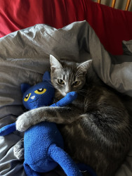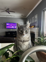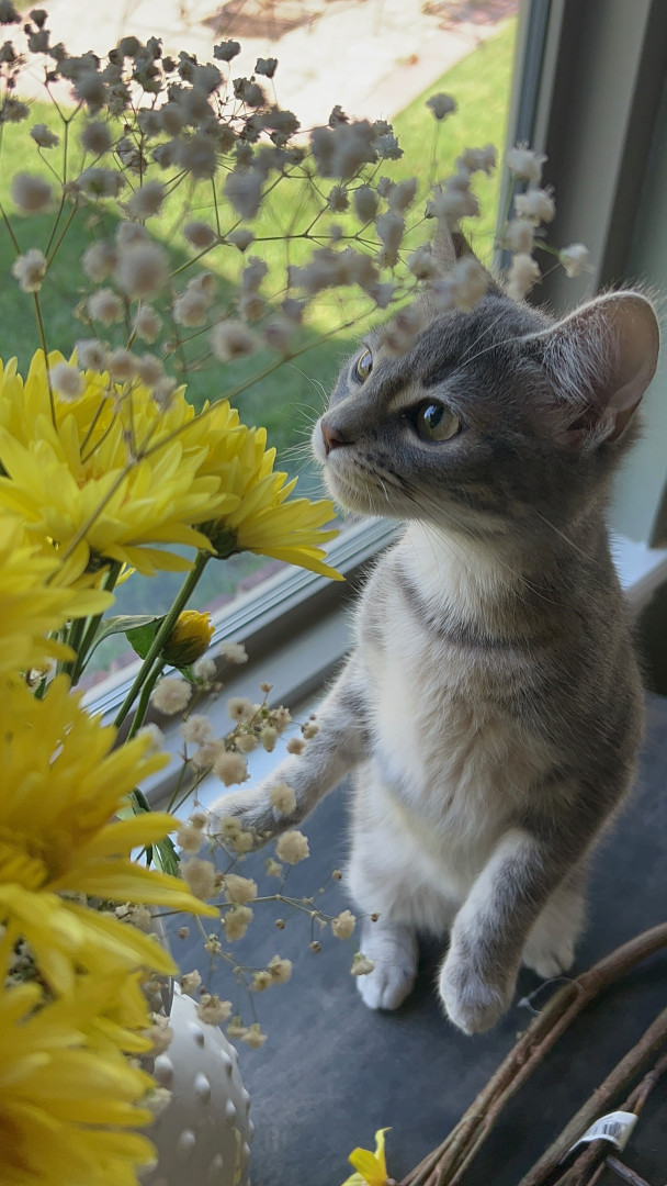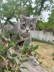 Jambo is a sweet gentle cat who loves to adventure in the backyard with her sister dog Luna, and she charms dog people with her kind nature.