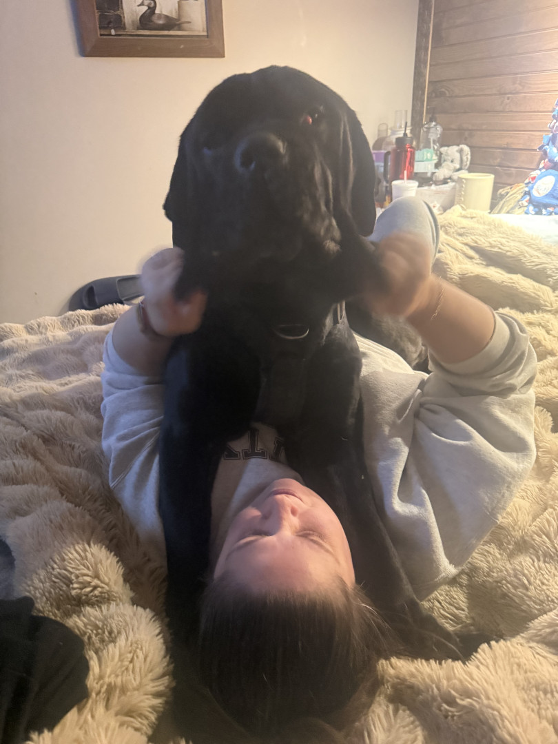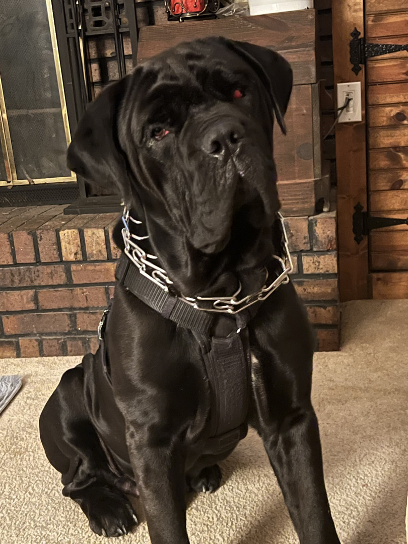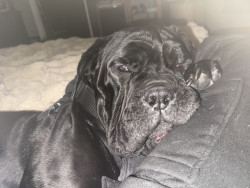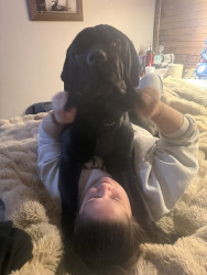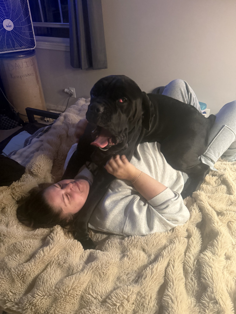 He is a gentle giant!! He is a Cane Corso. Jameson is my big ole baby. Personality to match his size., my daughter’s cuddle buddy