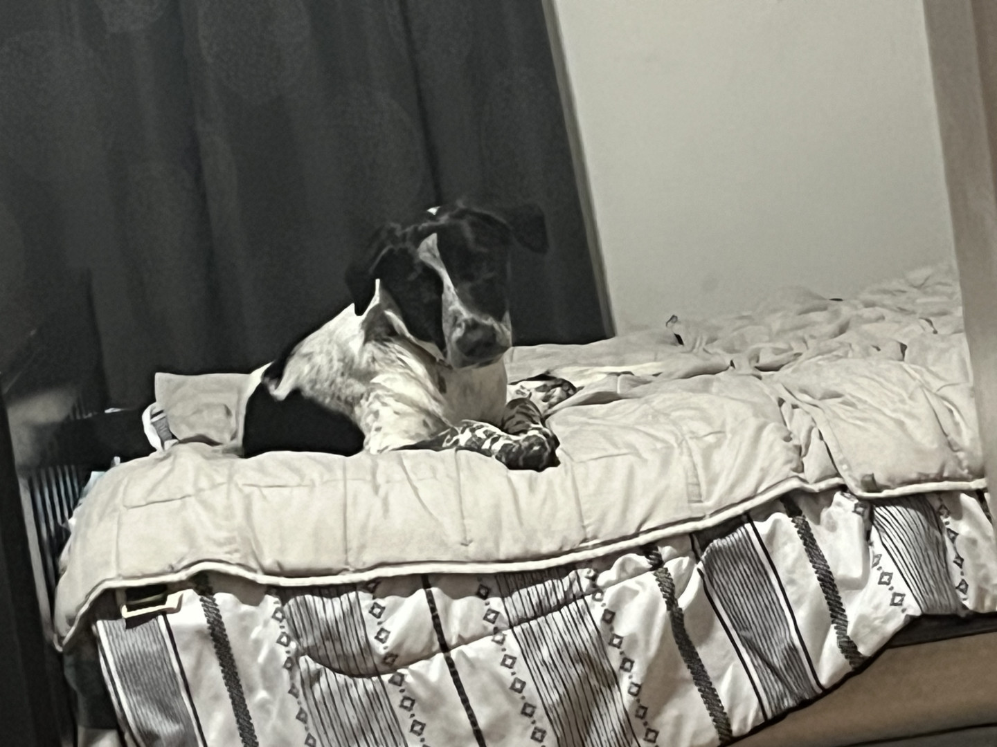 She was rescued from the shelter at 7 weeks old, a gift my son has been waiting for years, she is funny happy grateful crazy fast & loving