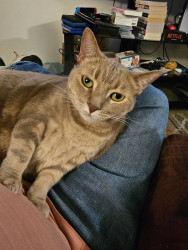 Learn MoreI have a pickle infused toy with cat nip that Jane loves to play with, however her favorite "toys" are just nudging up to me and getting all the pets(love) she can possibly get.