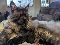 Jar Jar is a mainecoon. I Call him my big boy . He is sweet, loveable , he loves to snuggle!