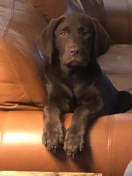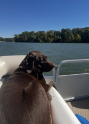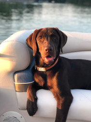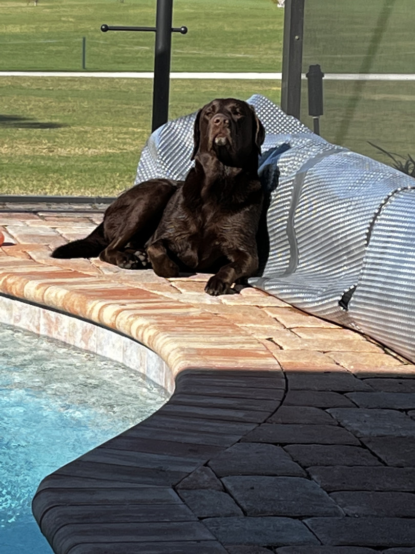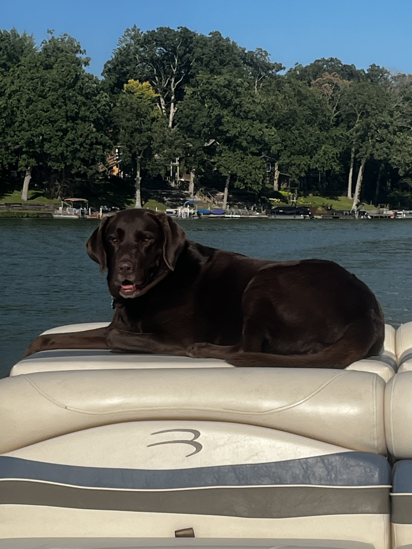 Jasmine is a chocolate lab that loves the lake boat rides and our grandkids. She keeps us young.