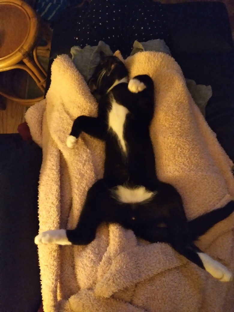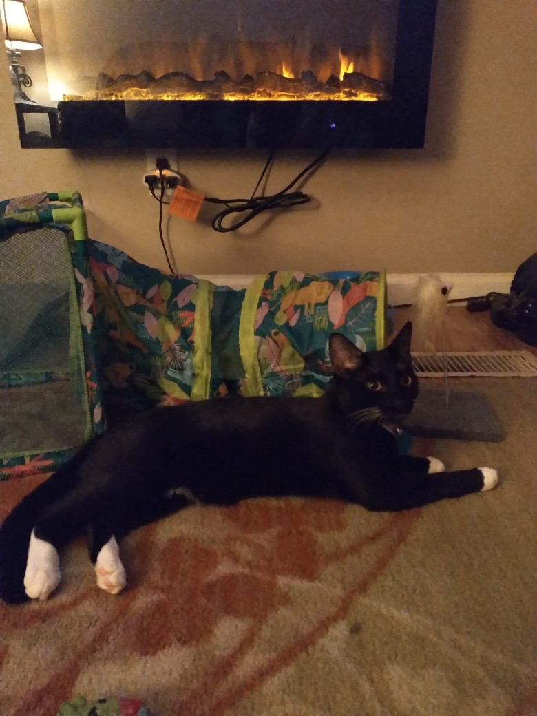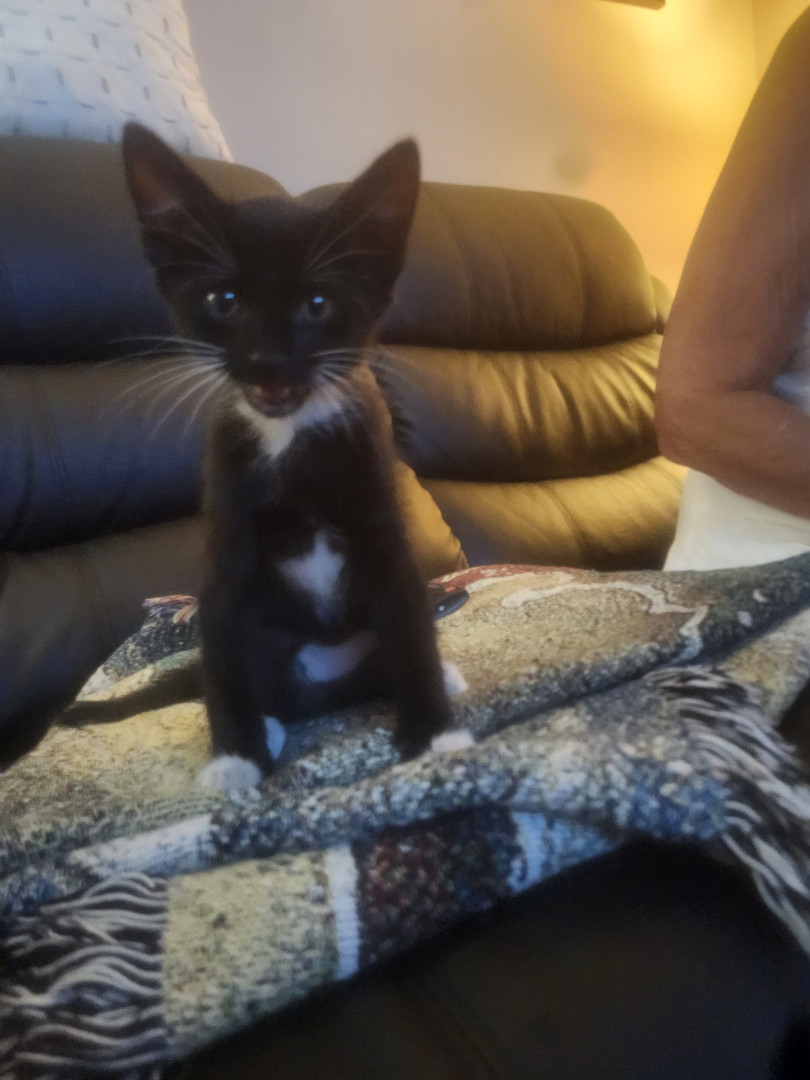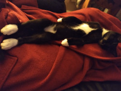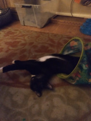His white feet, white belly pink paws and white whiskers. His markings are unique and has a very shiny sleek coat.