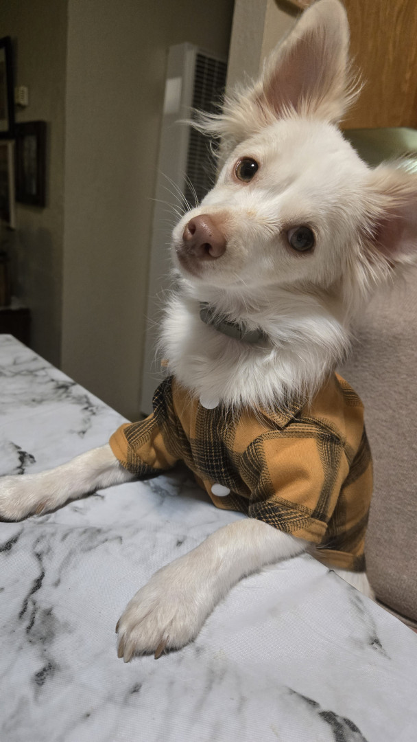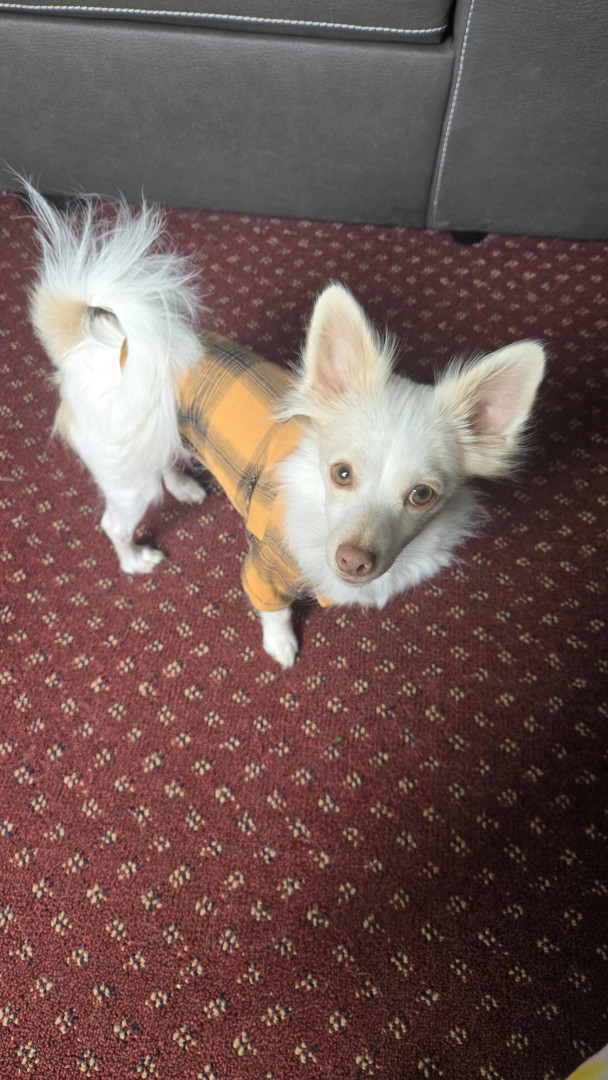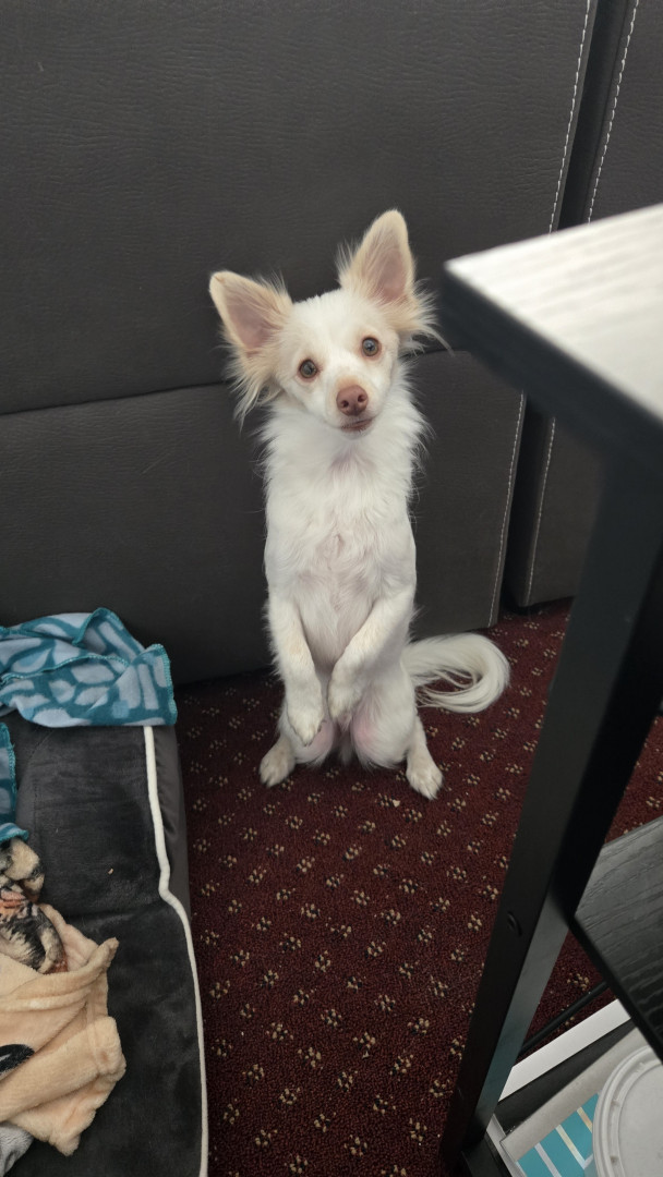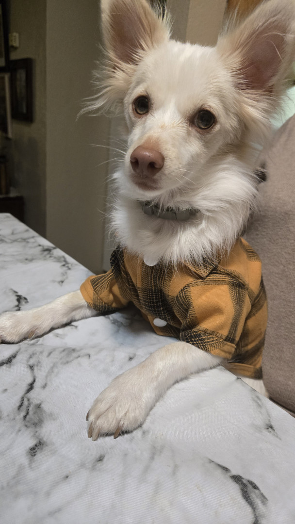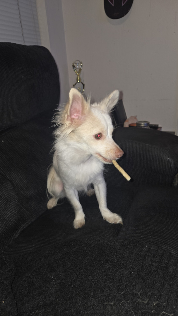 He look like Falkor, from the never ending story.He looks like a white dog liked dragon..