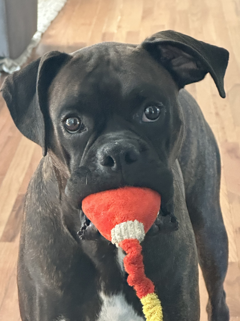 Full of fun, energy, love and loyalty! He is so devoted and loves his family; even Bella our furry cat!