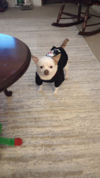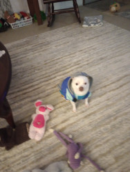 Fun loveable loves giving kisses he loves his shirts he gets cold easily