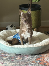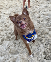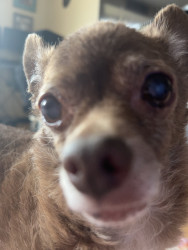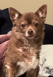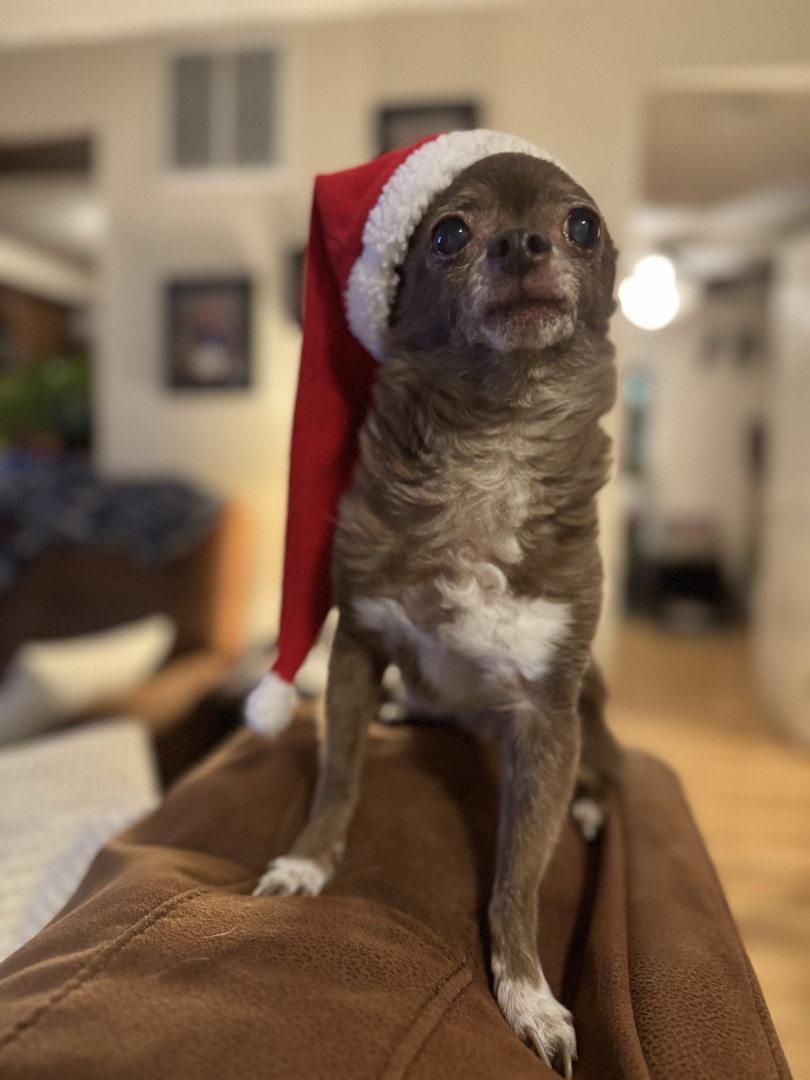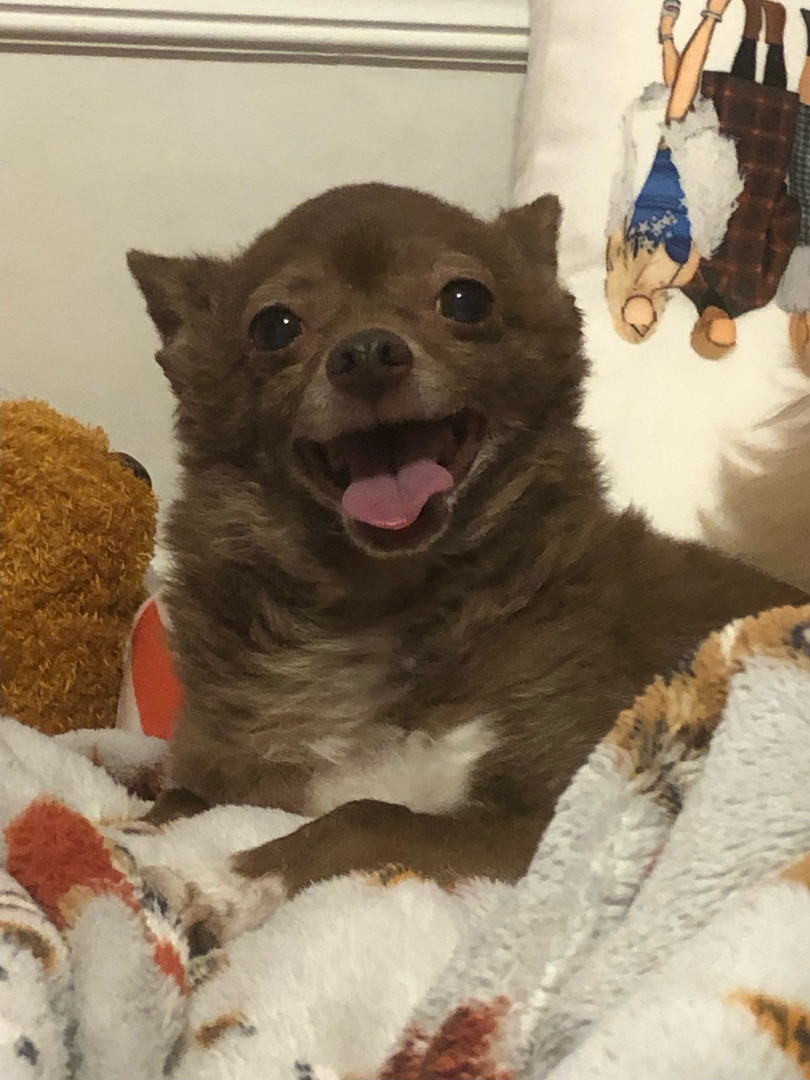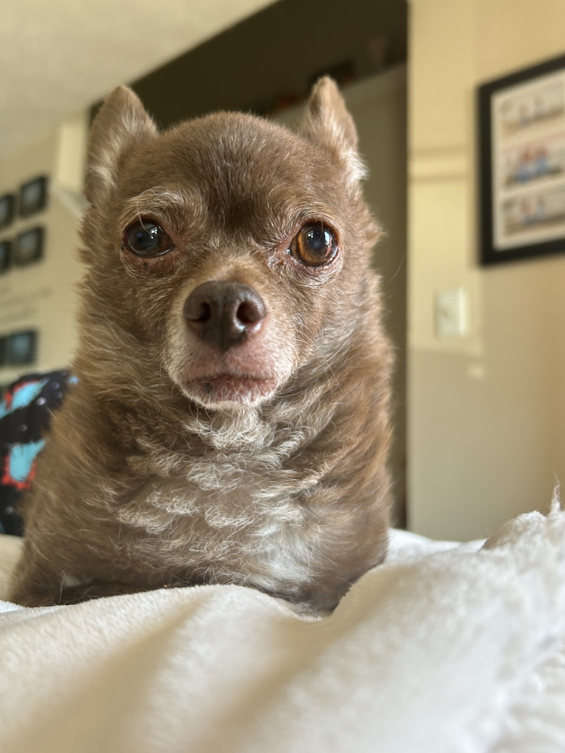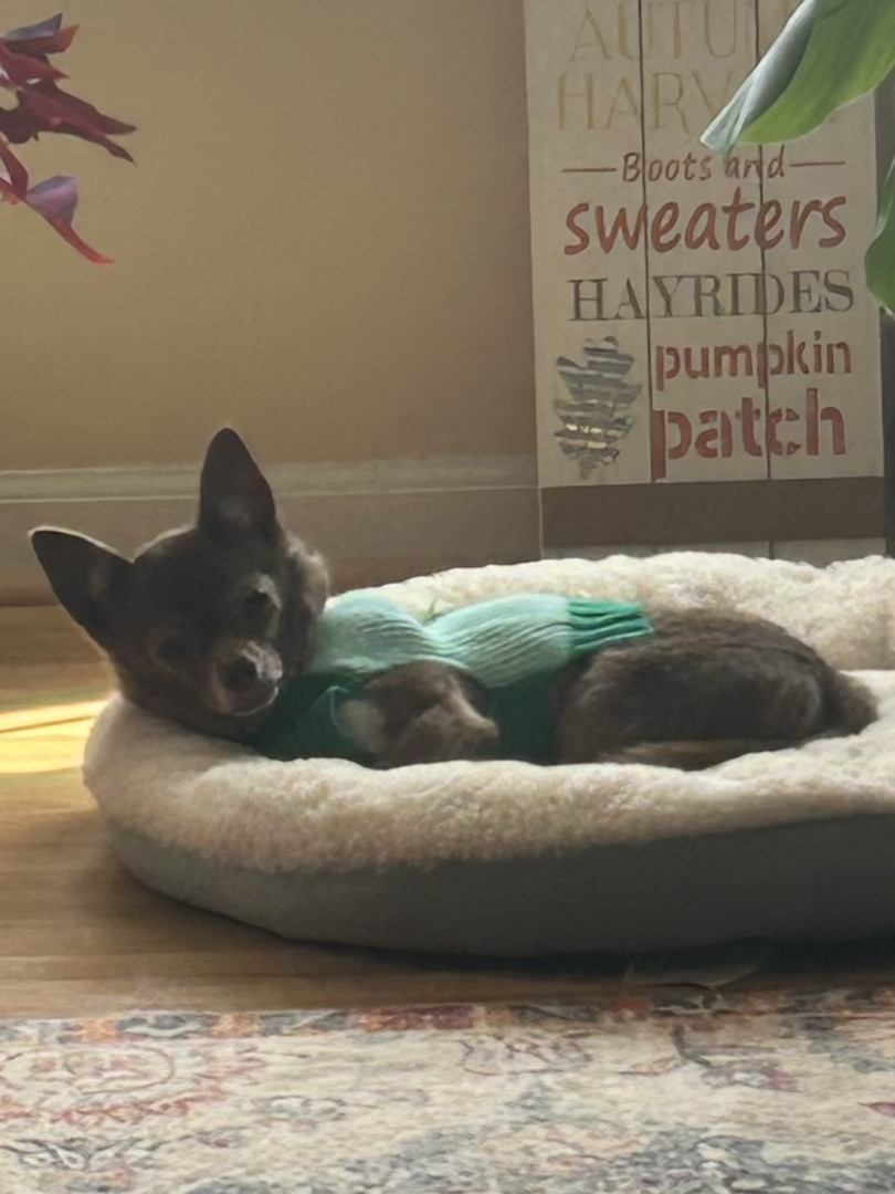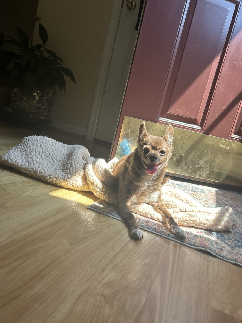 Jax is a lovable 16-year-old chihuahua who enjoys playing fetch, cuddling, and sleeping. He’s especially happy when sitting in the warm sun.