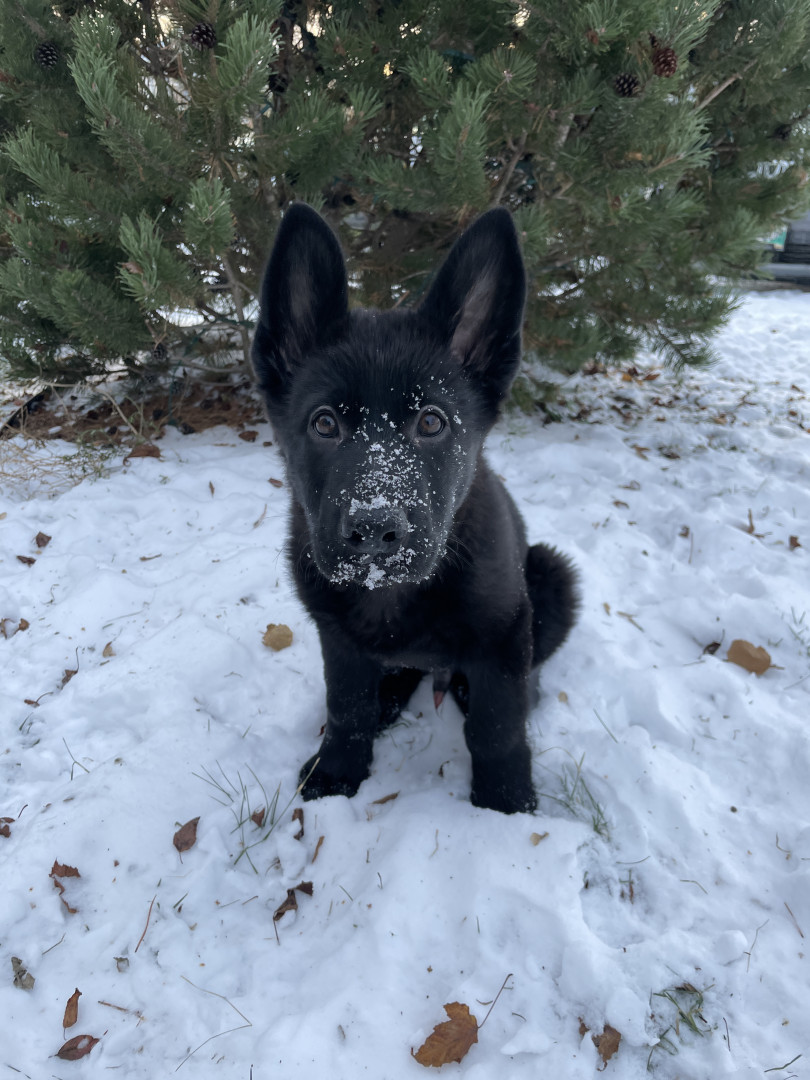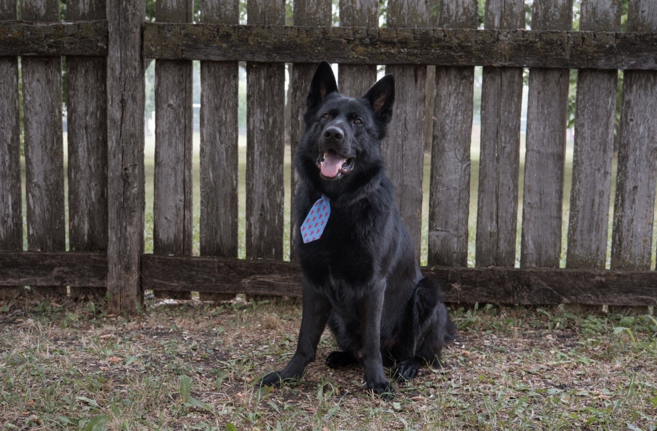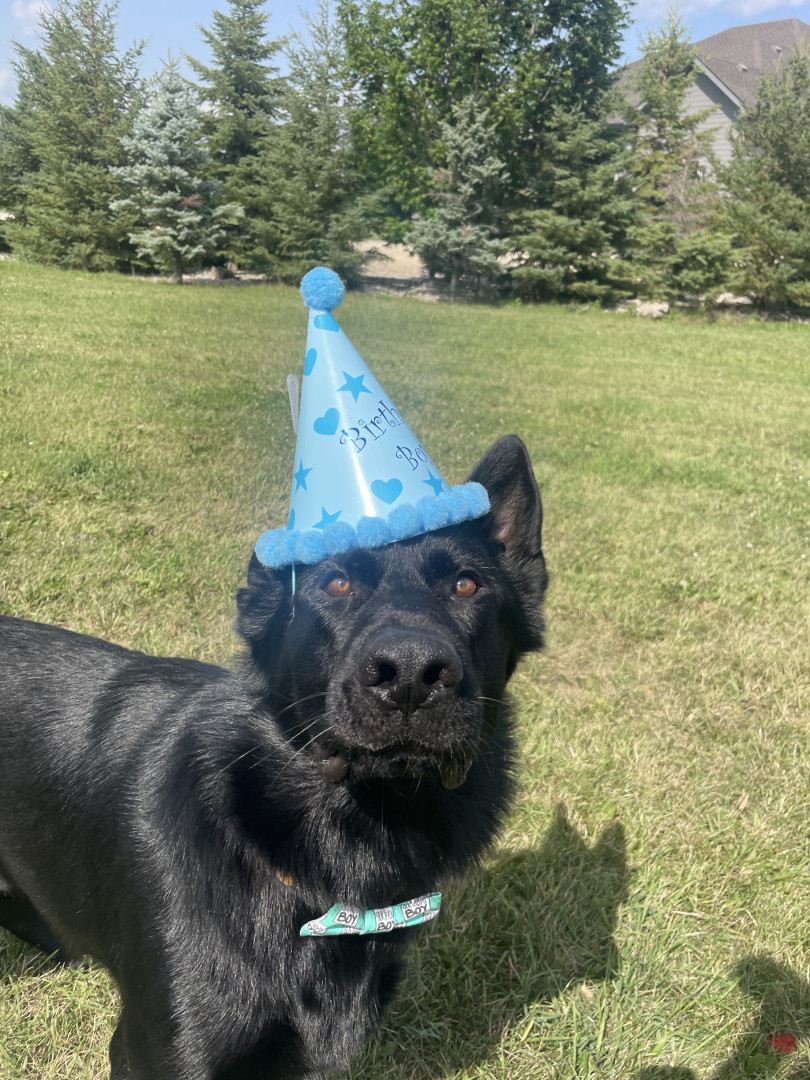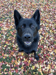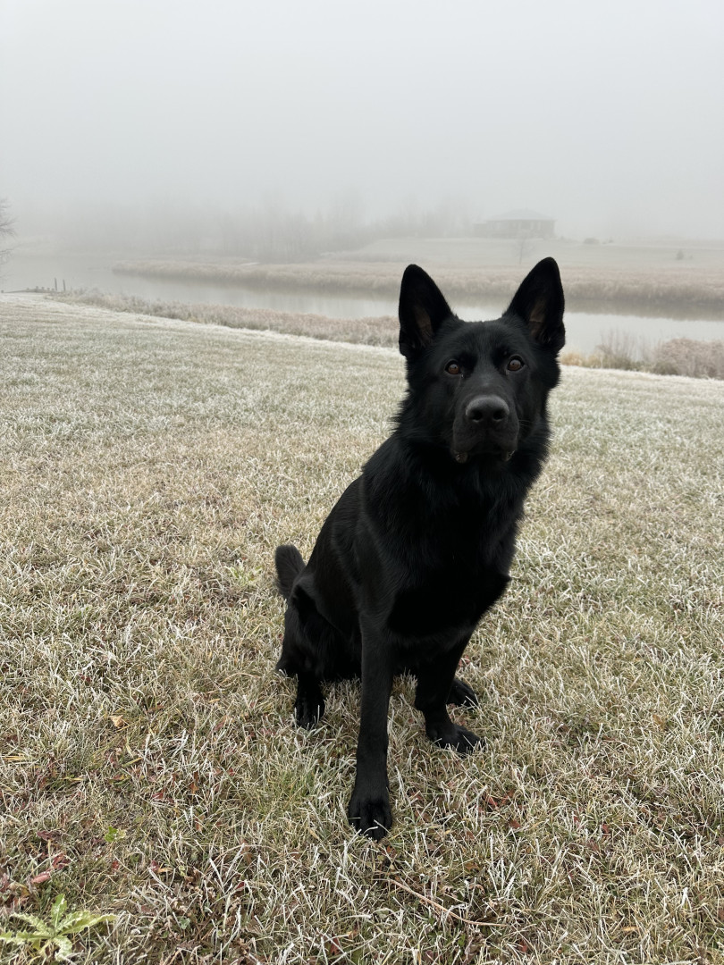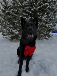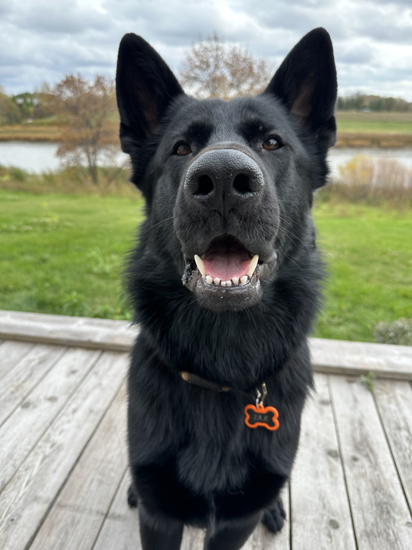 Jax is a black German shepherd Labrador who loves to play outside and howls when it comes to wolf videos