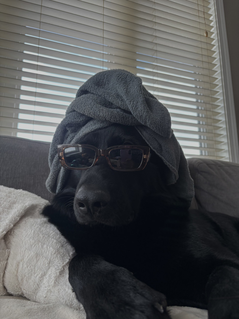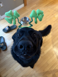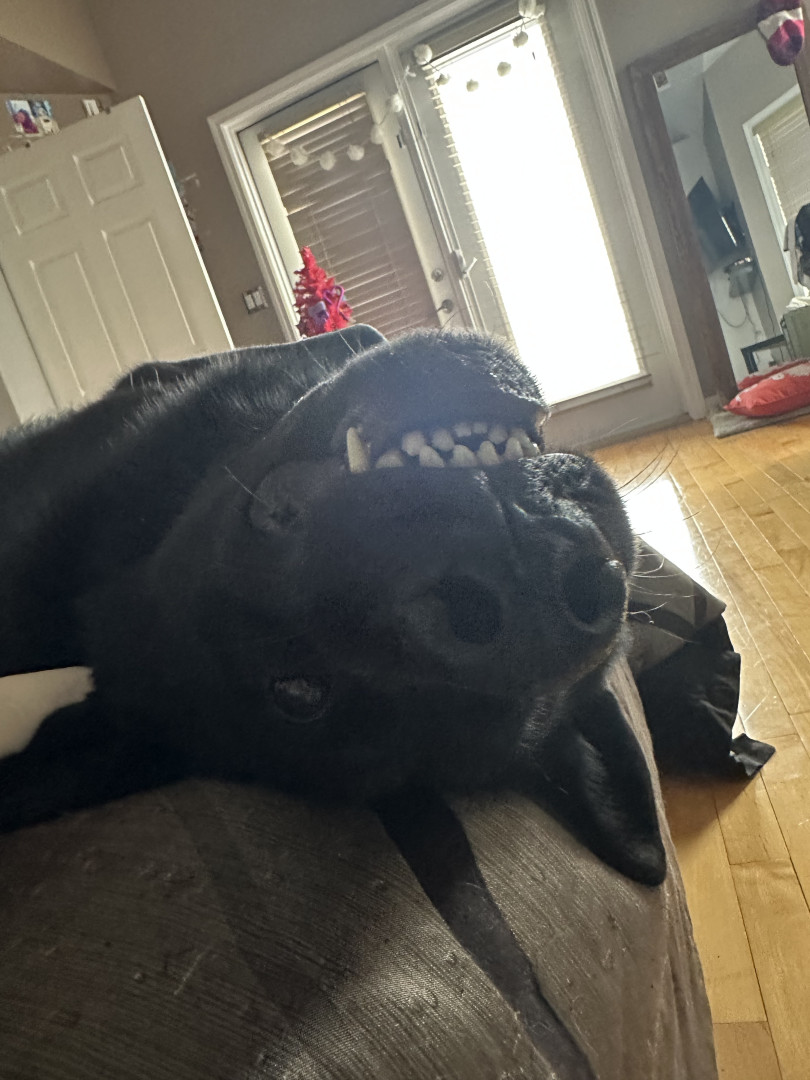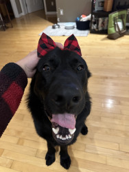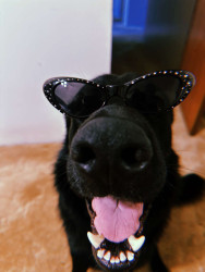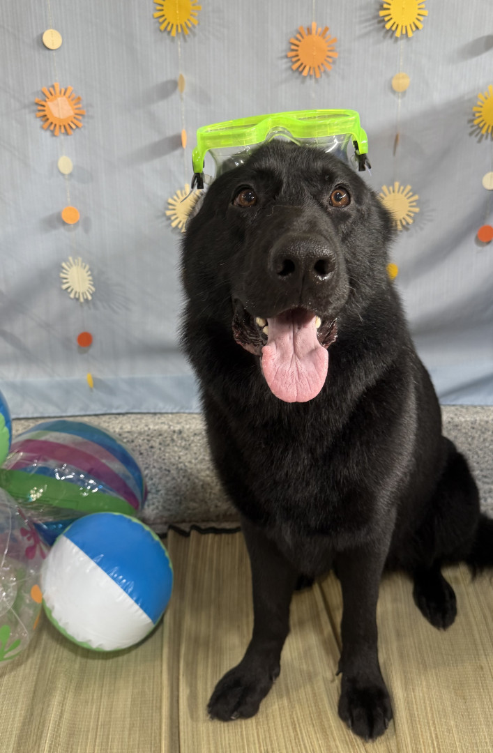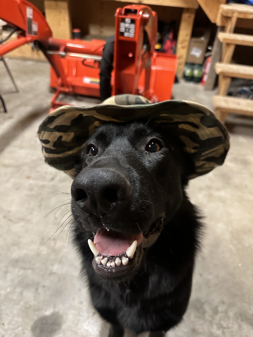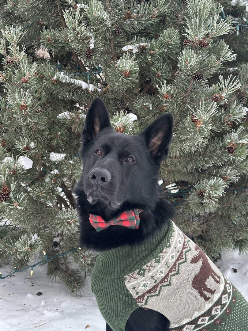 Jax is a black German shepherd Labrador who loves to play outside and howls when it comes to wolf videos