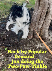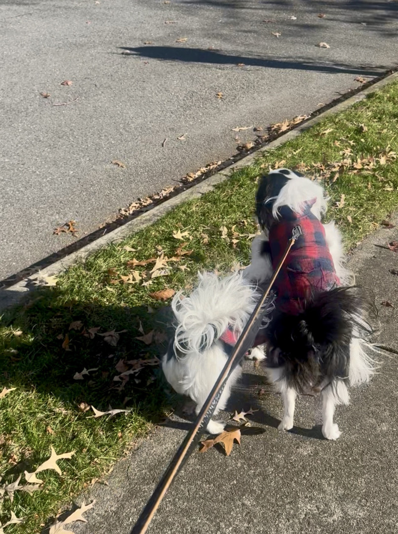 When Jax walks on a leash, he does a full handstand while he tinkles—instant comedy! π He also sits on his butt like a tiny human and will literally stand on his brother for a boost… then yell at him like he’s giving orders.