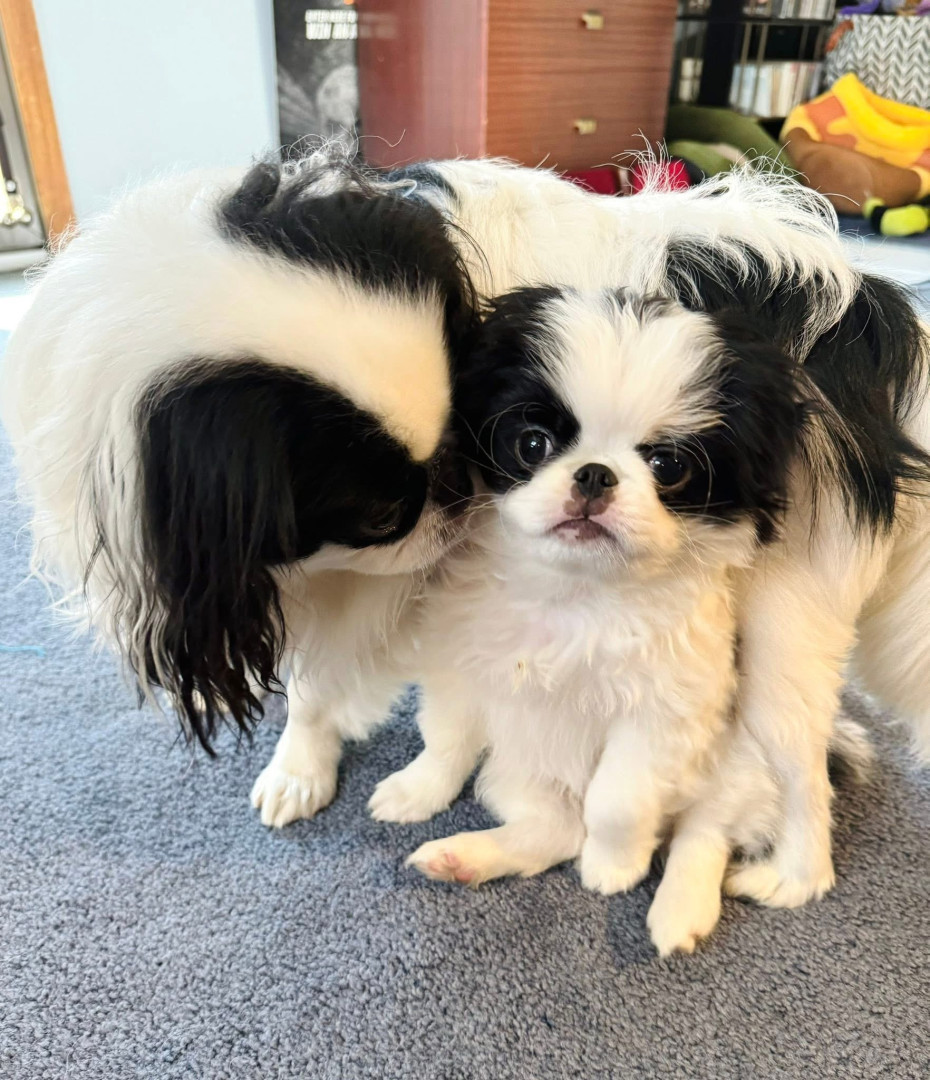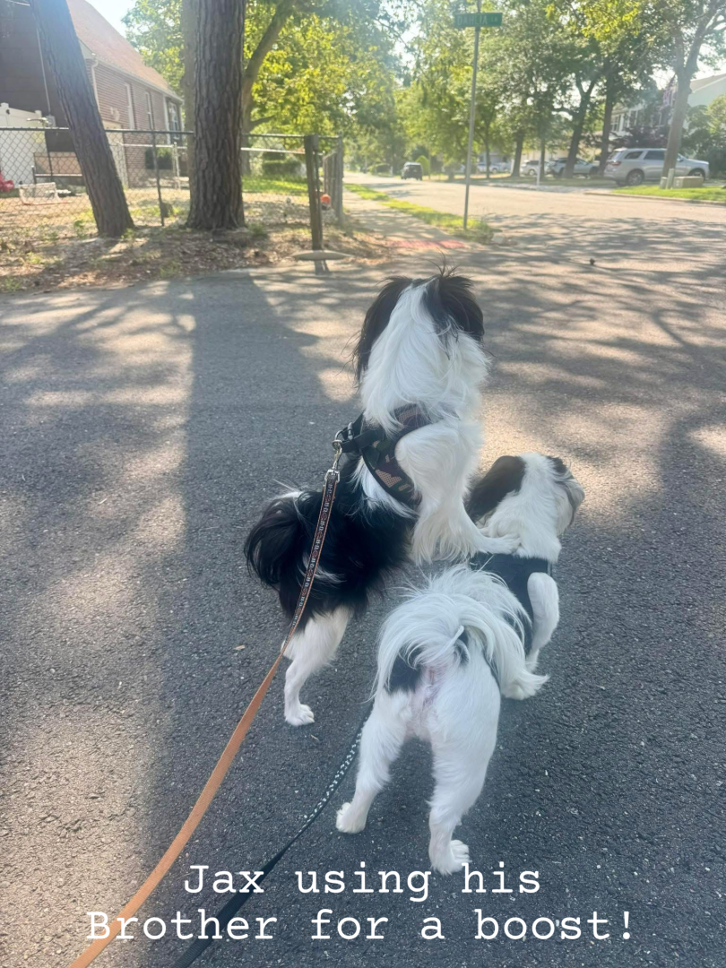 Jax is pure entertainment wrapped in 14 pounds of love. He wakes you up at 6 a.m. by standing on you and licking your face, uses his brother as a step stool, and then yells at him like a bossy little coach. He has a big bark but is terrified of a leaf π blowing by. Entertainment is truly his middle name! πΎπ