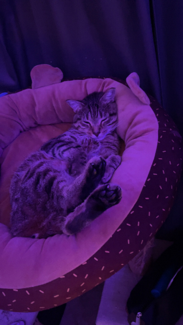 So most cats like to sleep during the day and be up all night however Jax loves to be on a human schedule and sleep throughout the night and be up all day.
