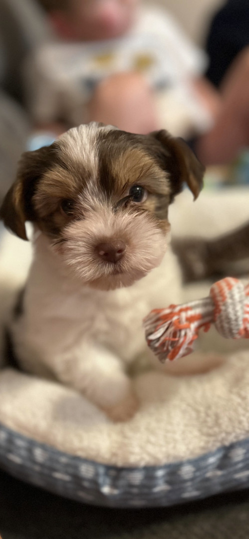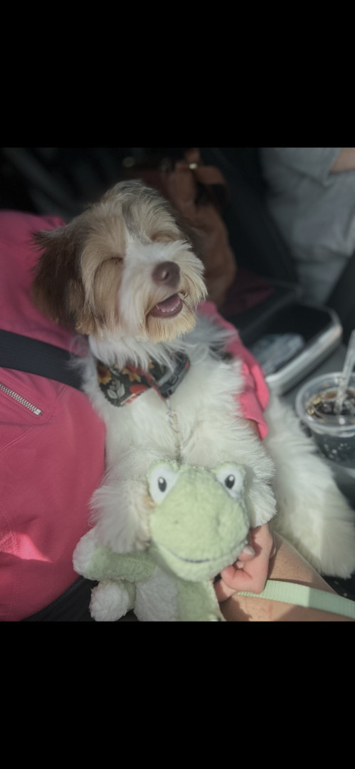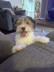 My dog Jax , cute sometimes cuddly very crazy, wild energetic very mischievous gets into trouble all the time, but he is my baby.