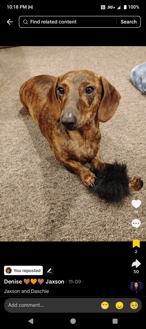 Jaxson is 5 years old he is a Brindle Daschound with beautiful markings. Brindles are rare.