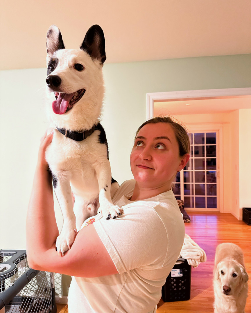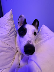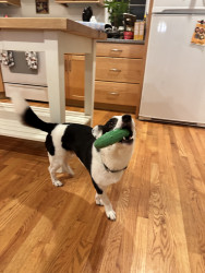 Jean Ralphio is a dog of many names- his namesake is Jean Ralphio Saperstein from Parks and Rec. Some other titles he goes by are "The Mensch", Jalphie, Ron Jalphio, and the needle nosed nibbler to name a few. He is loud and proud, and yodels his displeasure or excitement. He is very athletic, talented and performs many tricks, however, he is not always very bright and will walk into walls because he's too busy staring at his mom. The only thing louder than his mouth is his personality.