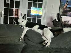 Jean Ralphio is a comedian in a Corgi/Cattle dog mix's body.