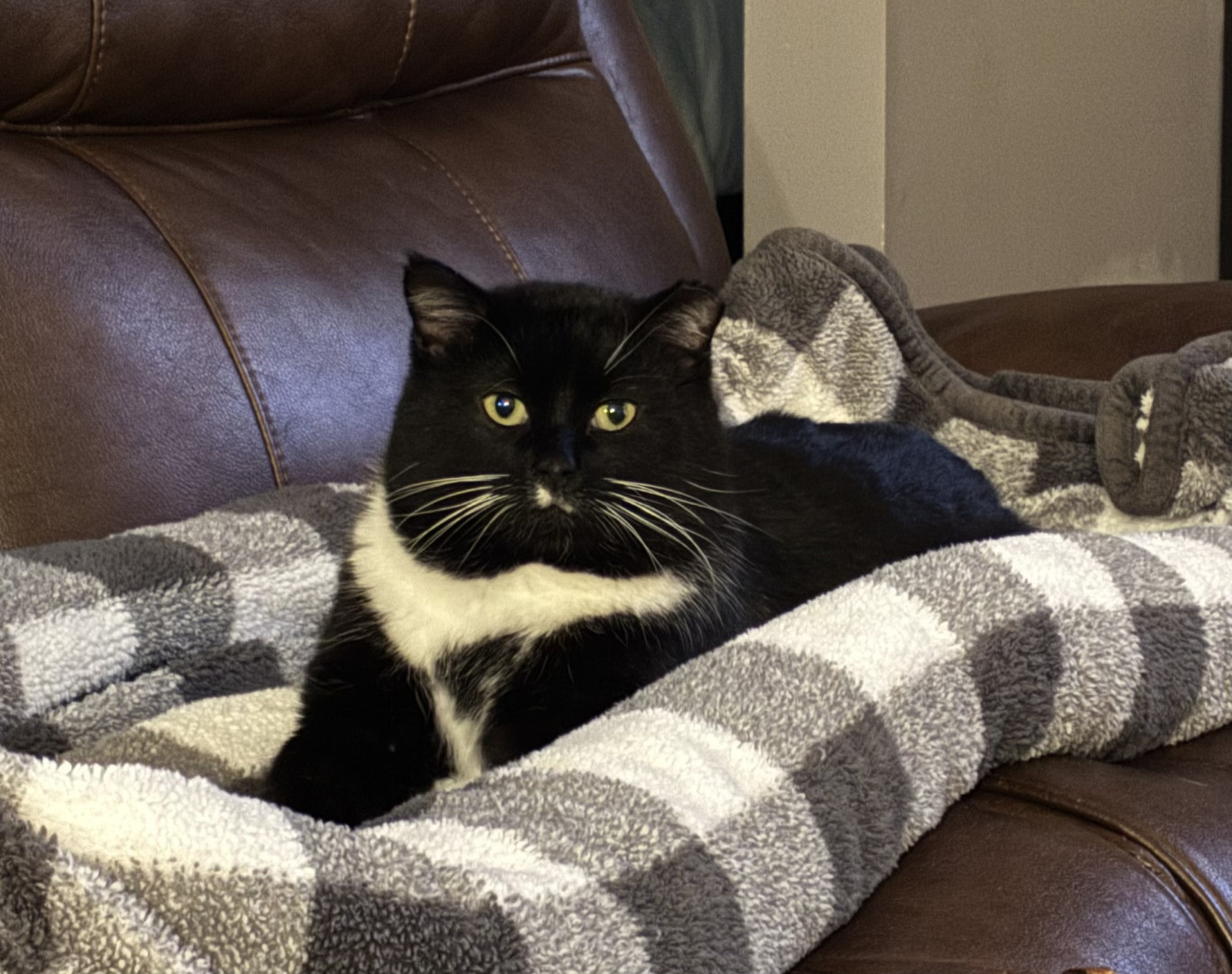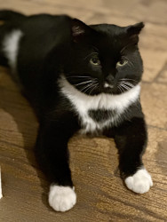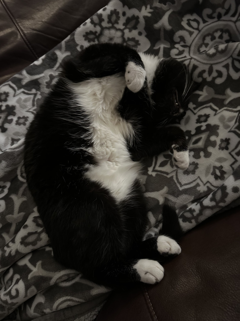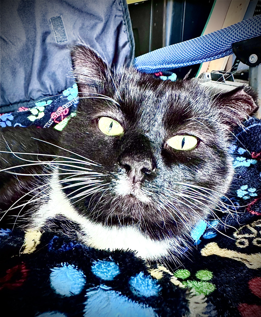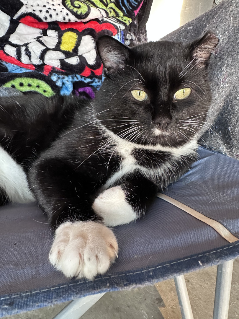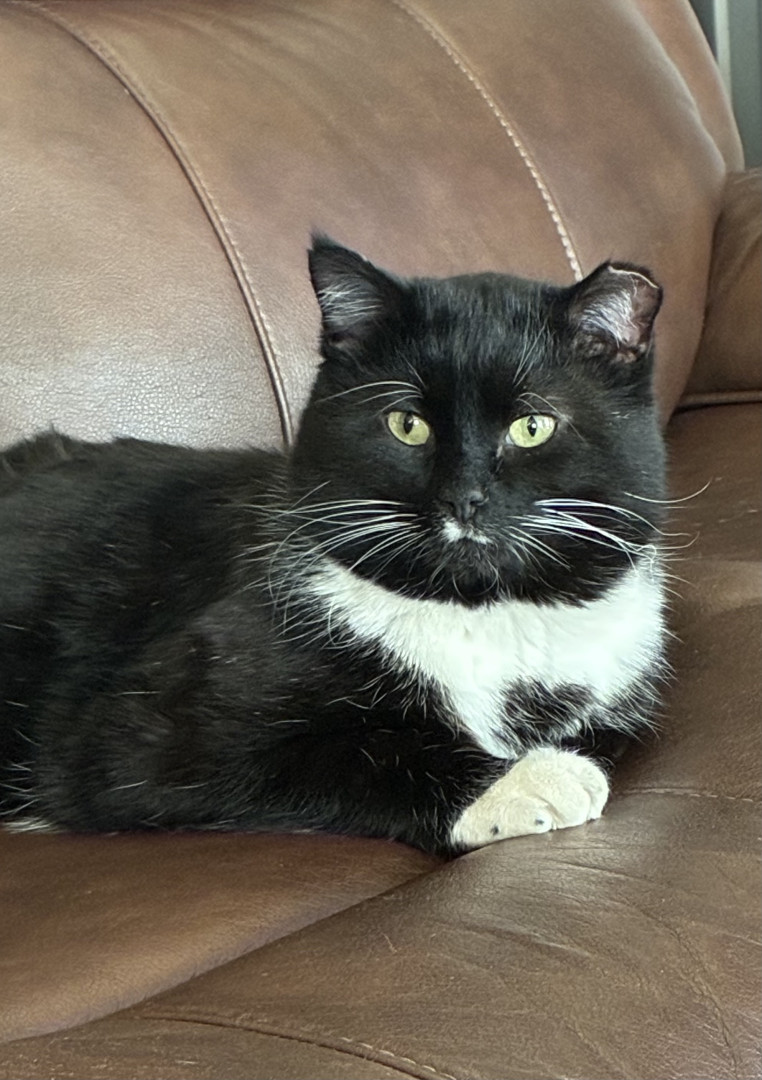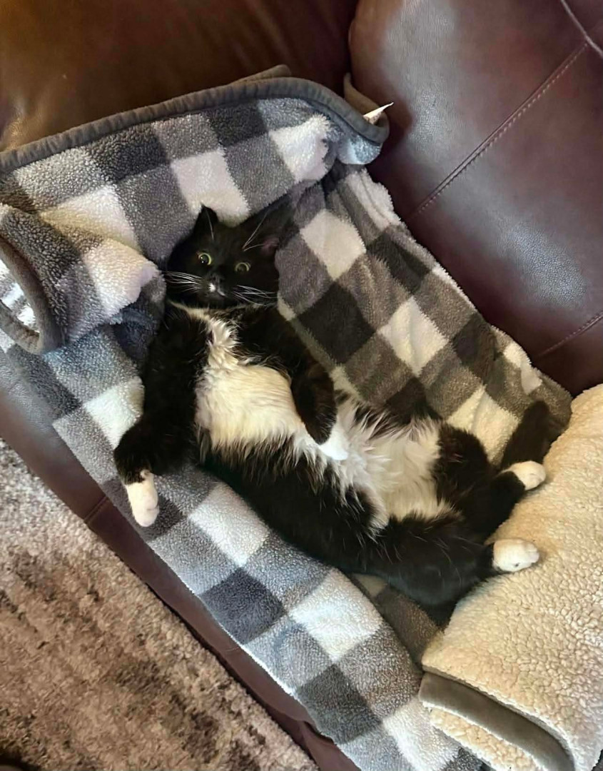 Jeffrey began coming around our house in 2024, and was known as the “Neighborhood Stray”. We would leave food outside of our garage EVERY night for him. He began to trust us, spending cold Winter nights in our garage, with lots of blankets and a space heater to keep him warm. We were patient with him, allowing for him to “come around” in his own time. He now lives indoors with our other 3 Rescues. Jeffrey is living proof that animals have the kindest souls, and should be treated with love!