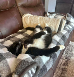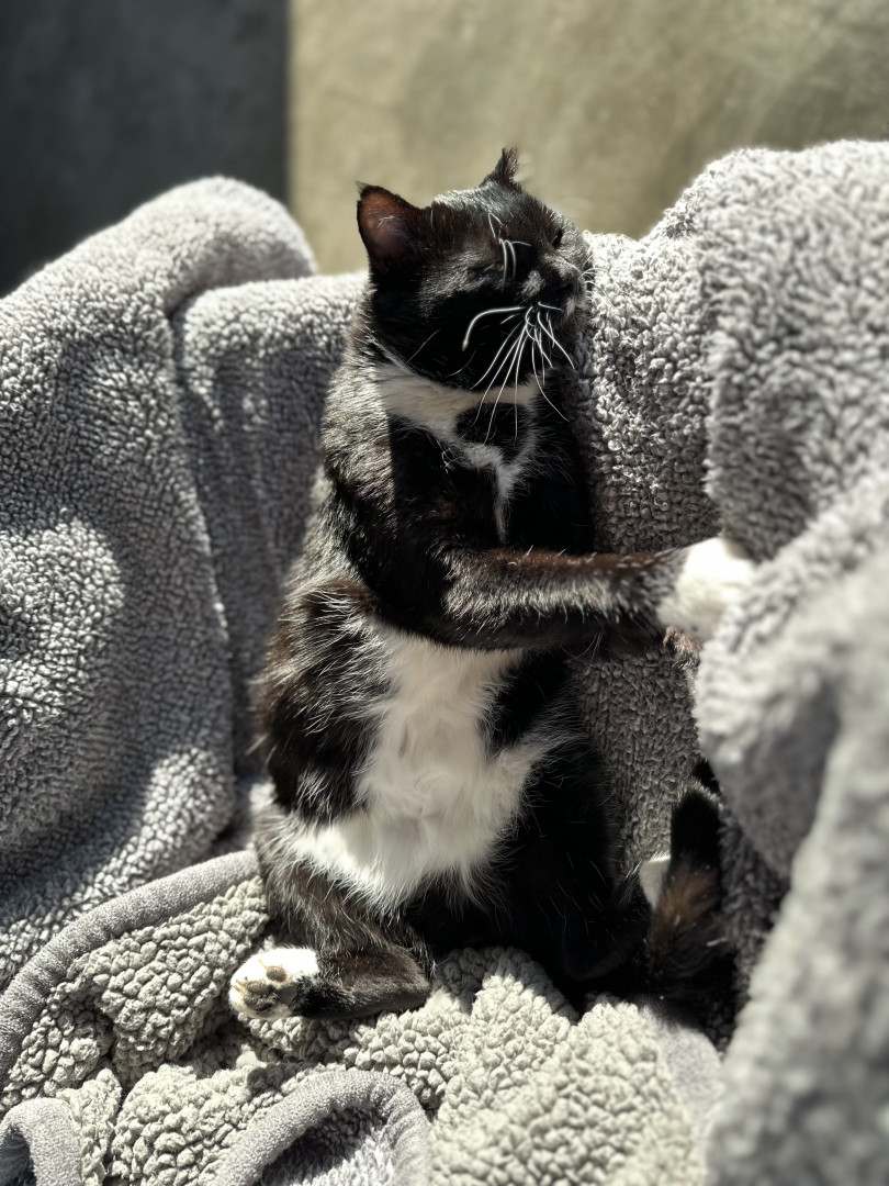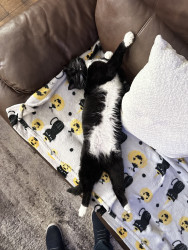 Receive Text UpdatesAfter living outdoors for the past two years, the whole indoor world is still new to Jeffrey. He does however love chasing the point laser and/or relaxing on his favorite blanket.