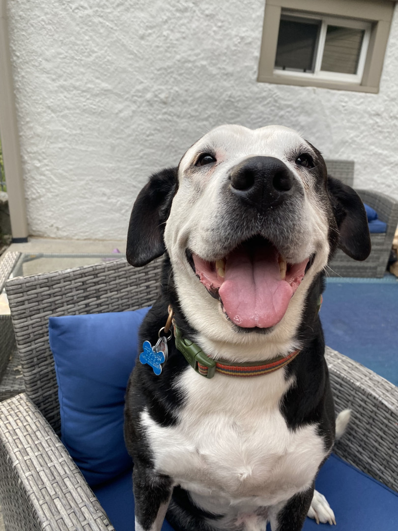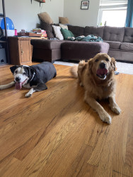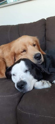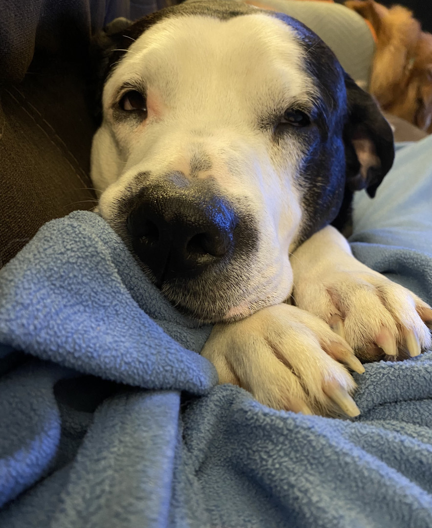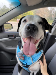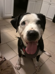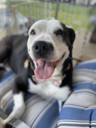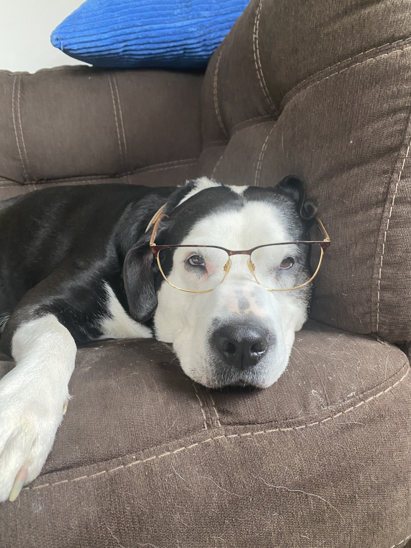 He's a gentle, sweet, lovable, smart, playful, couch potato, that's very patient and loves all the new people he meets. Did I forget a heart of gold.