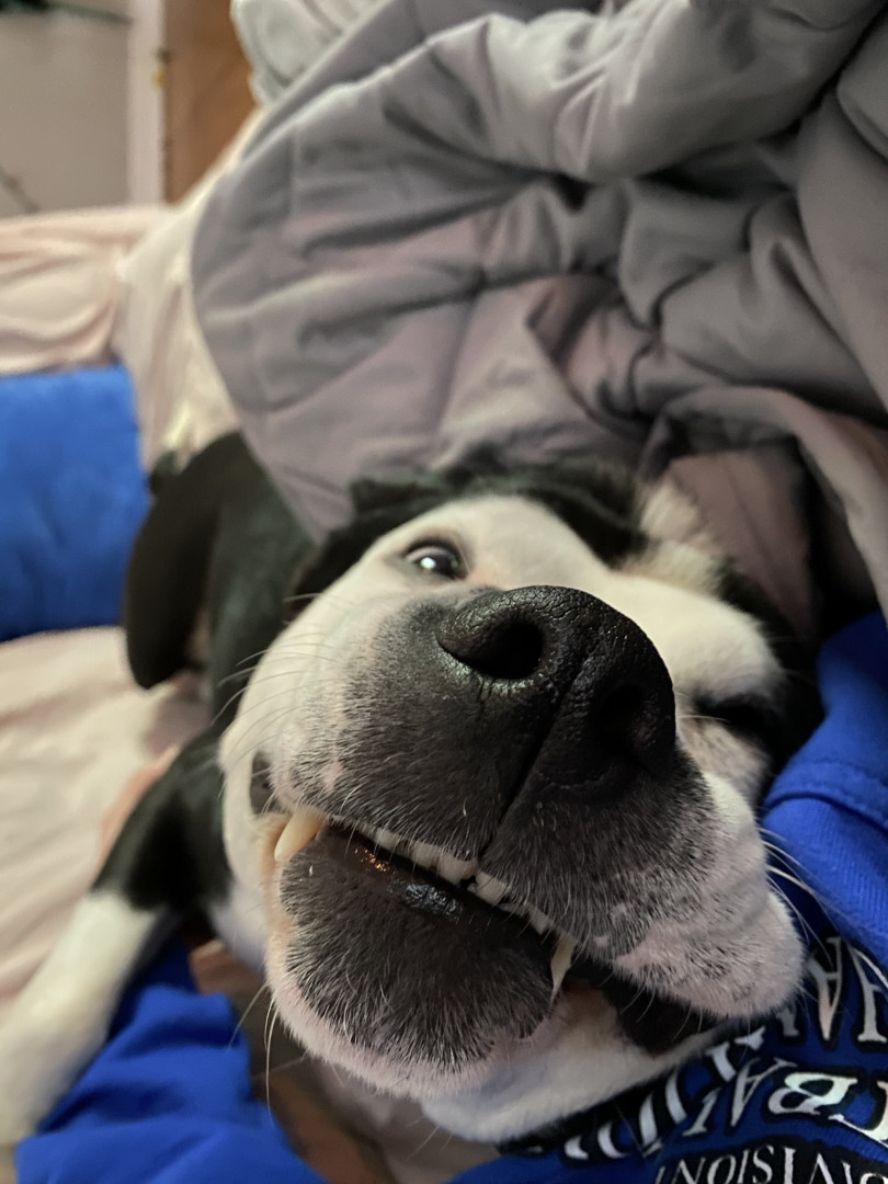 Jelly bean learns very fast and his smile that's always right in my face as soon as we wake up.