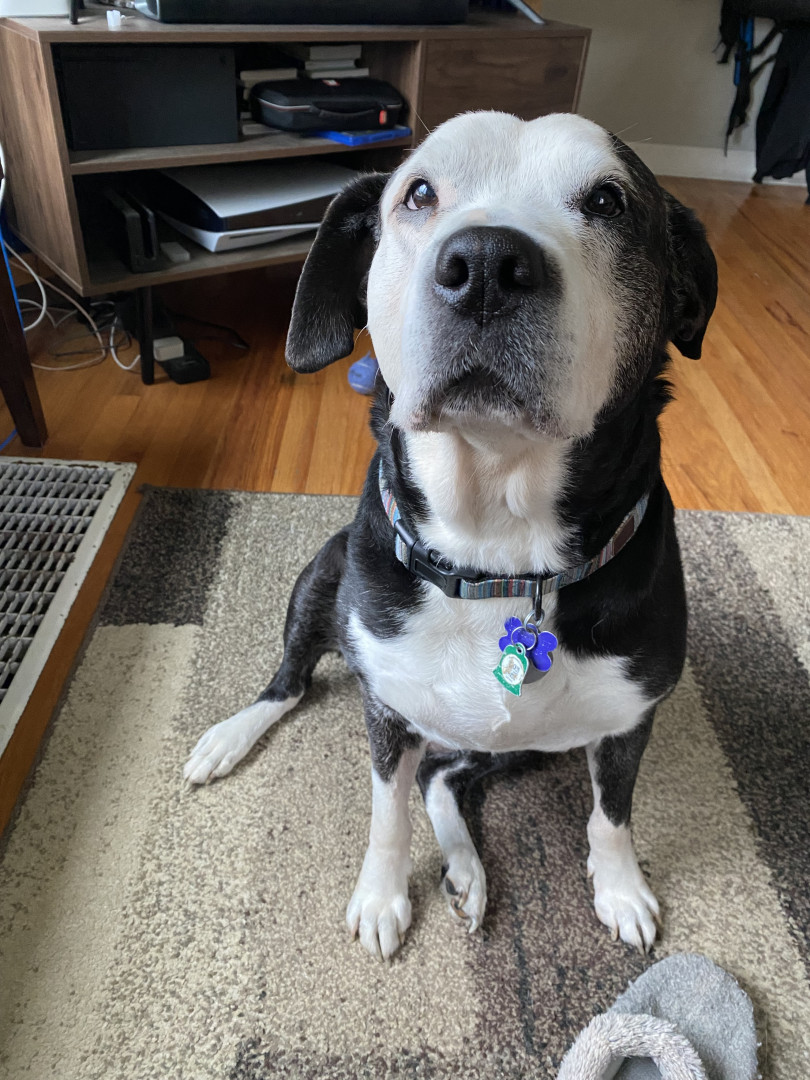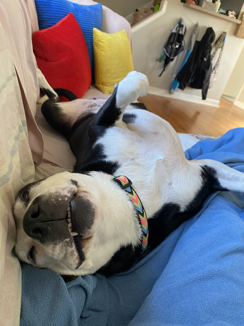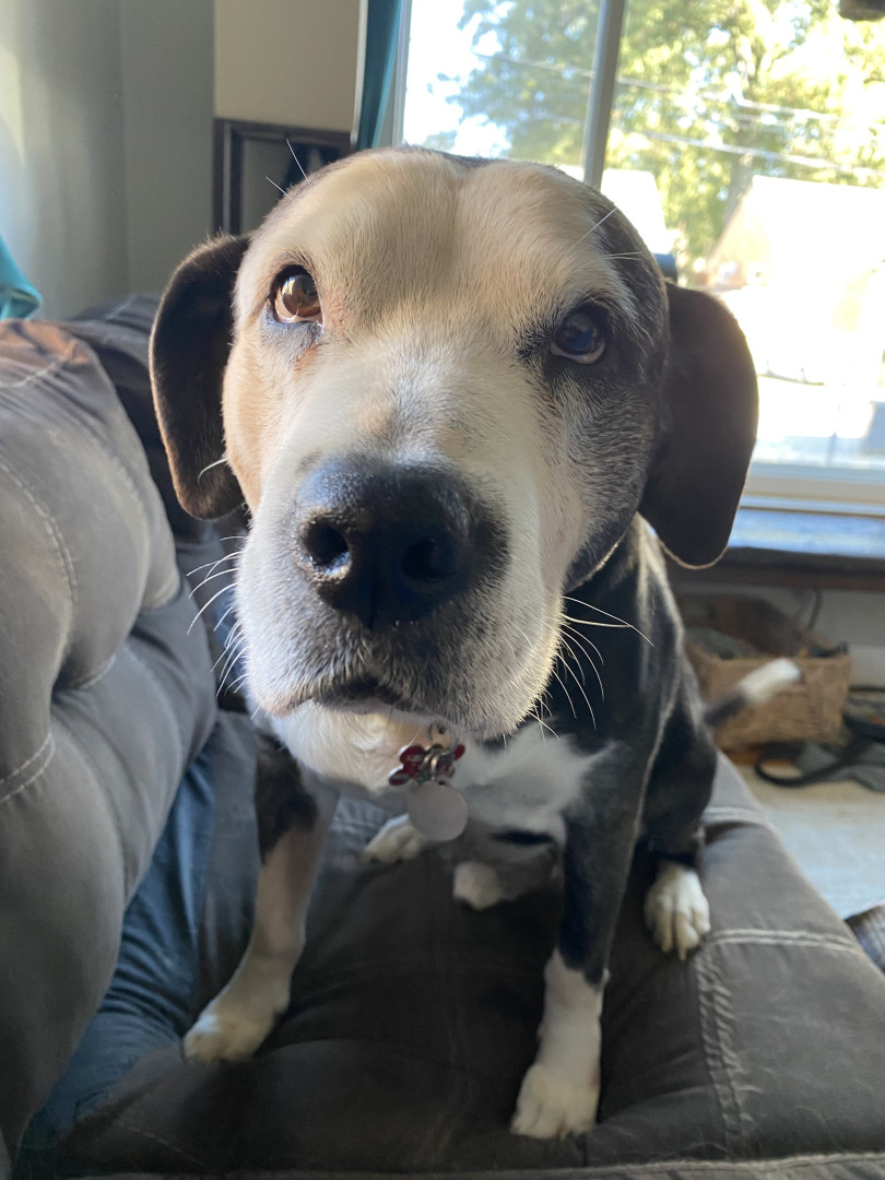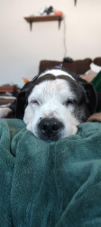 Lovable jelly bean who just wants snuggles, treats, a good walk, annd being a couch potato. Super smart and learns tricks so fast.