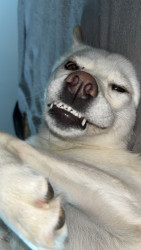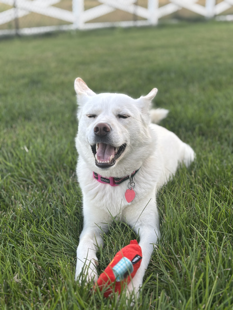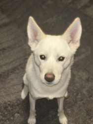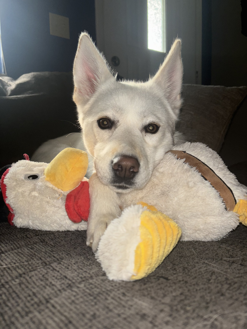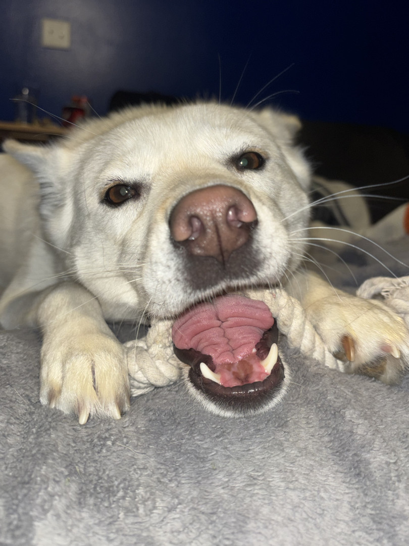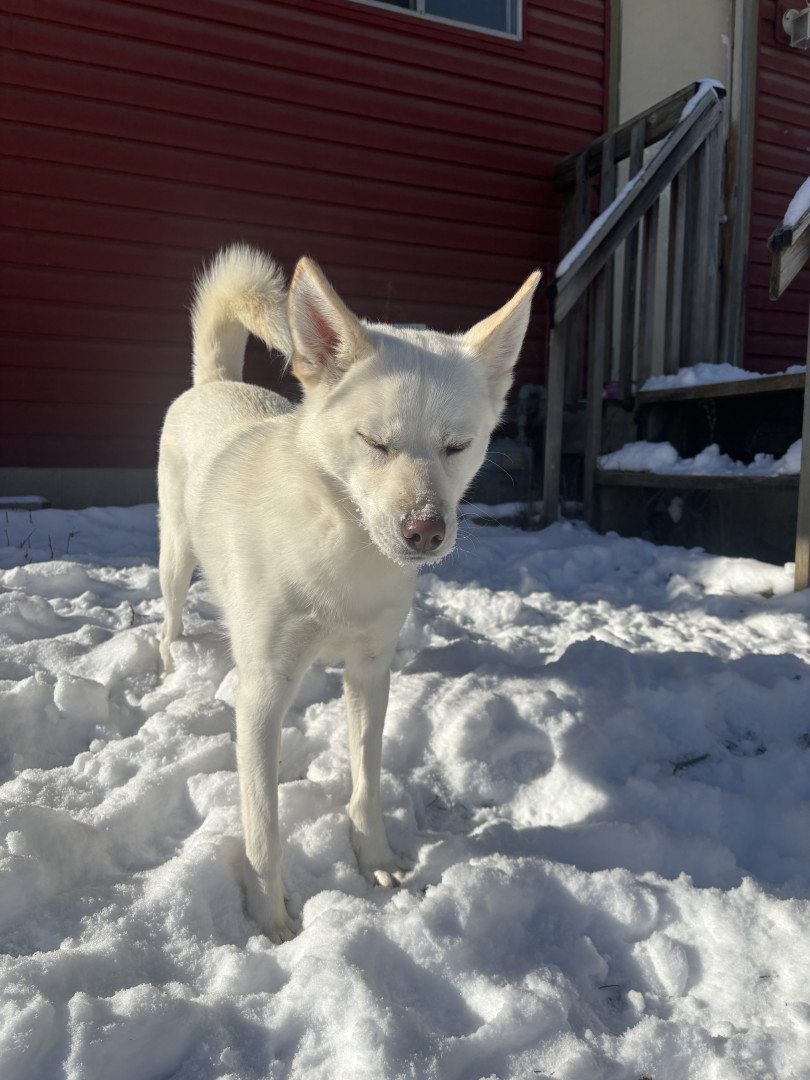Jellybean is a husky lab mix. She’s 2 years old. She’s very talkative and has an almost 7% wolfness.