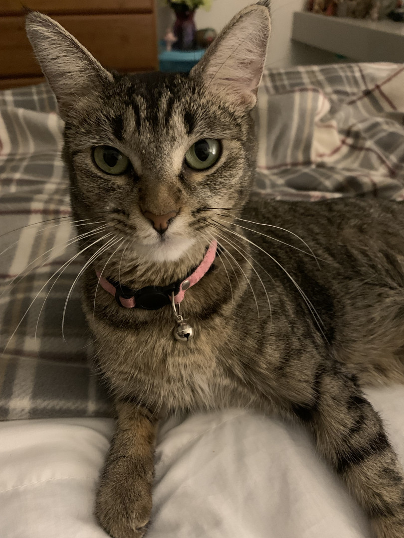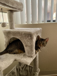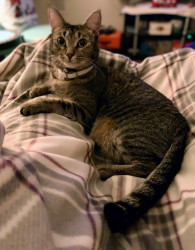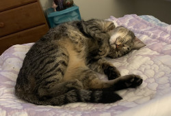 Jenny was a young mama kitty I adopted in August 2025 as my emotional support animal. She is a pistol, a climber and a love bug.