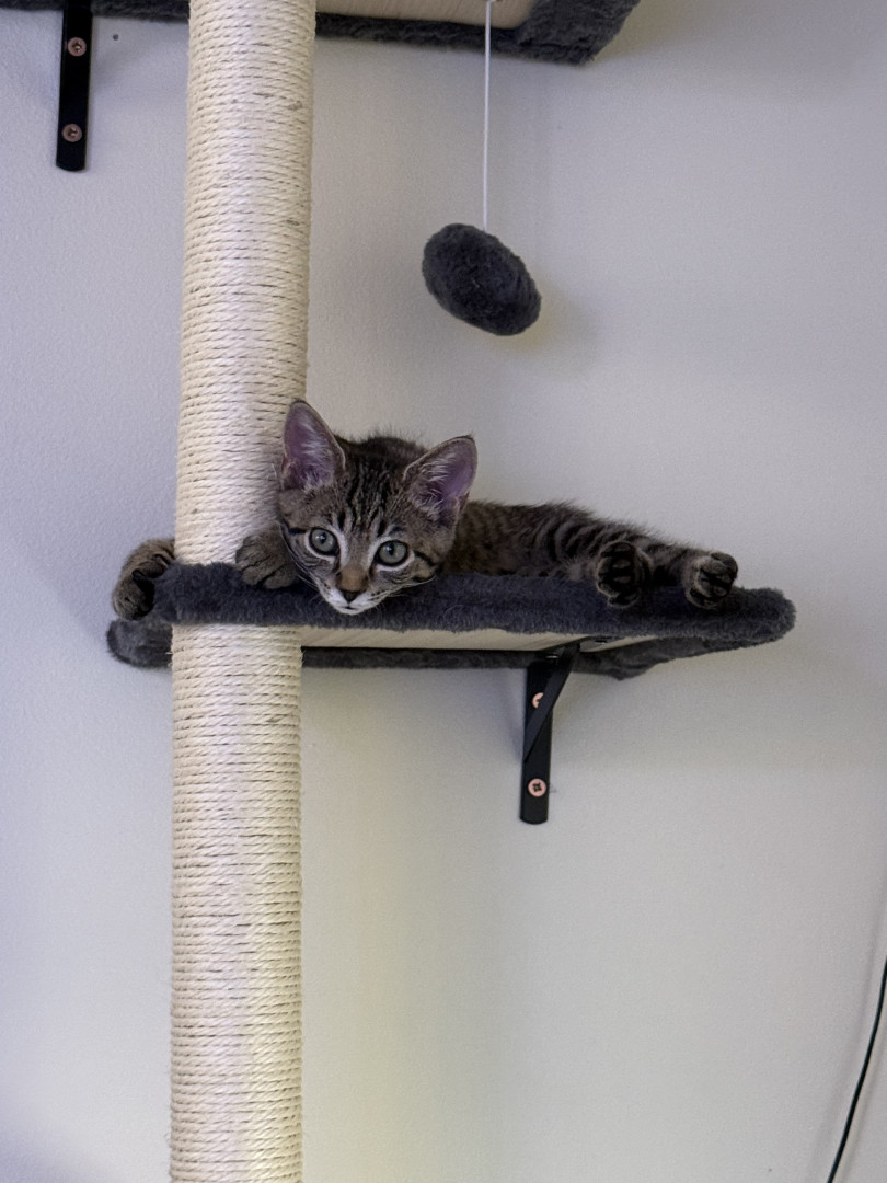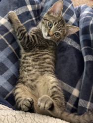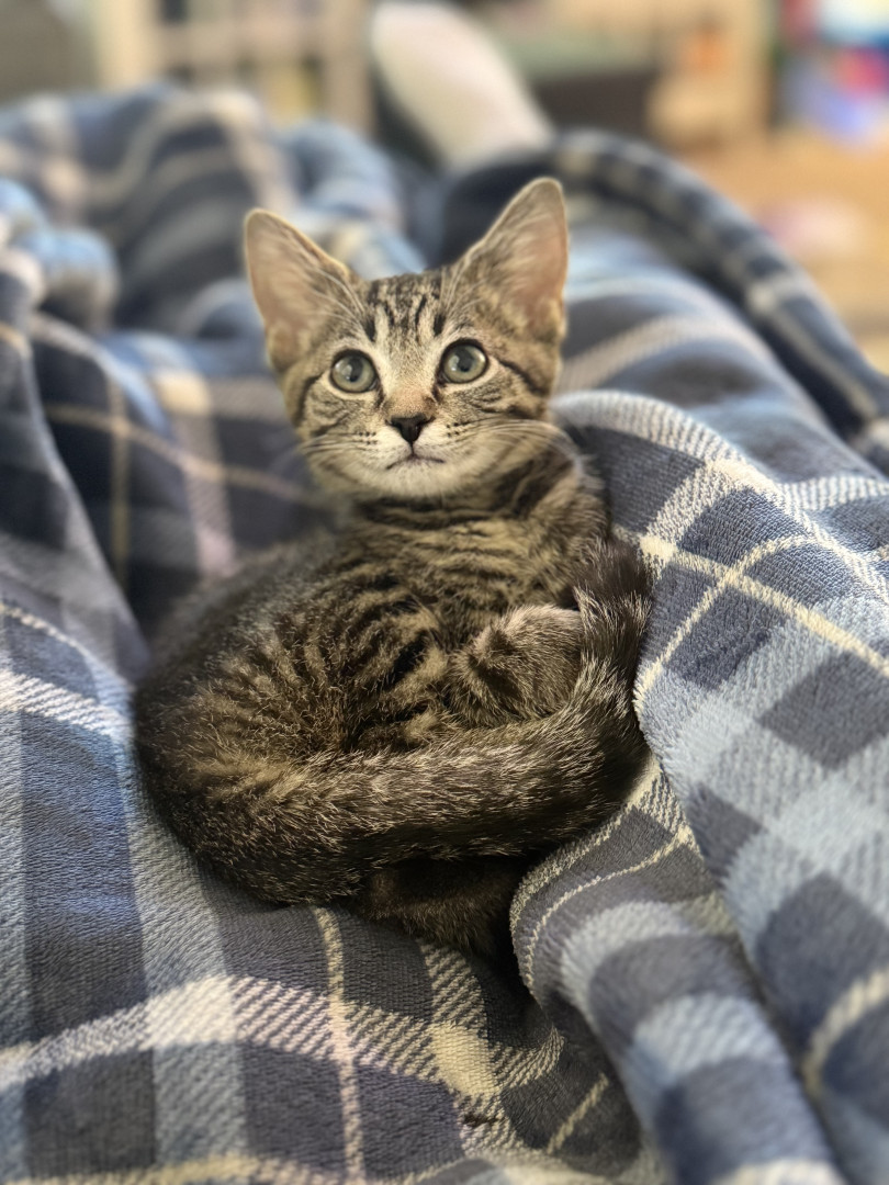 Playful, biscuit-making, treat-loving Jenny adores her big brother and gives the best snuggles. She’s the sweetest little kitten!