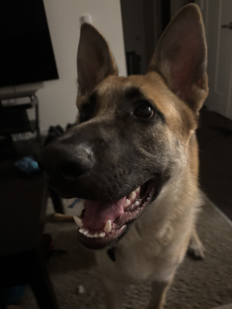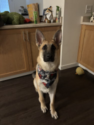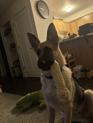 He’s a very sassy guy with a booty that sways, loves bones and squeaky toys, he is silly and loves to run and jump and play all day long.