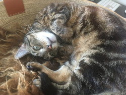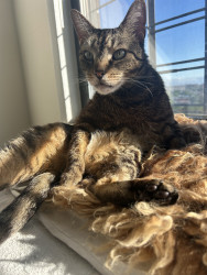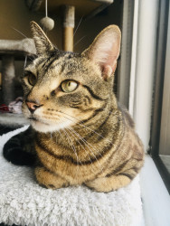 Receive Text UpdatesJericho loves bunny kicking his wool rat toy, chasing silvervine fruit galls, and jumping like crazy for his wand toys. He runs around the apartment and drifts around the corner like a racecar driver. He's got kitten energy as a 9-year-old "senior" cat! His favorite treats are freeze-dried rabbit and salmon. Jericho loves hunting for them around the apartment, and we use these as clicker training rewards.