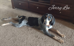 Jerry Lee is an 11 month old gorgeous Blue tick coonhound, who makes bad decisions on a daily basis, but he is the Best. Big part of our fam