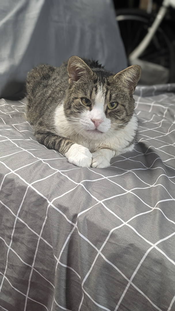 Jerry is a very loving and caring Cat, hes been thru a coyote attack and the 2025 Eaton Fires. He loves outdoors and his Treats!