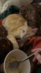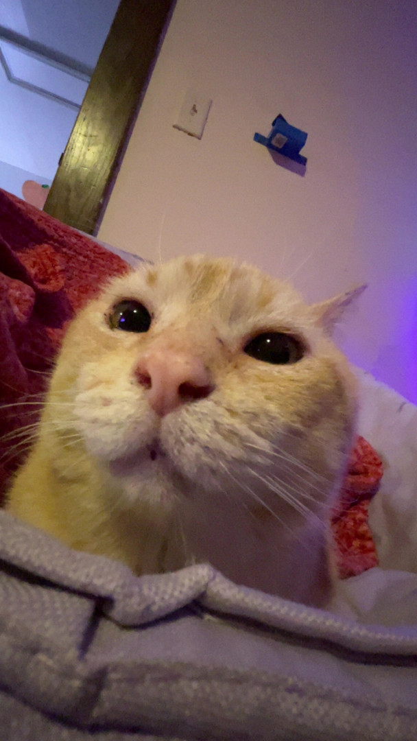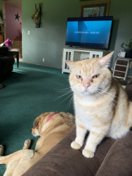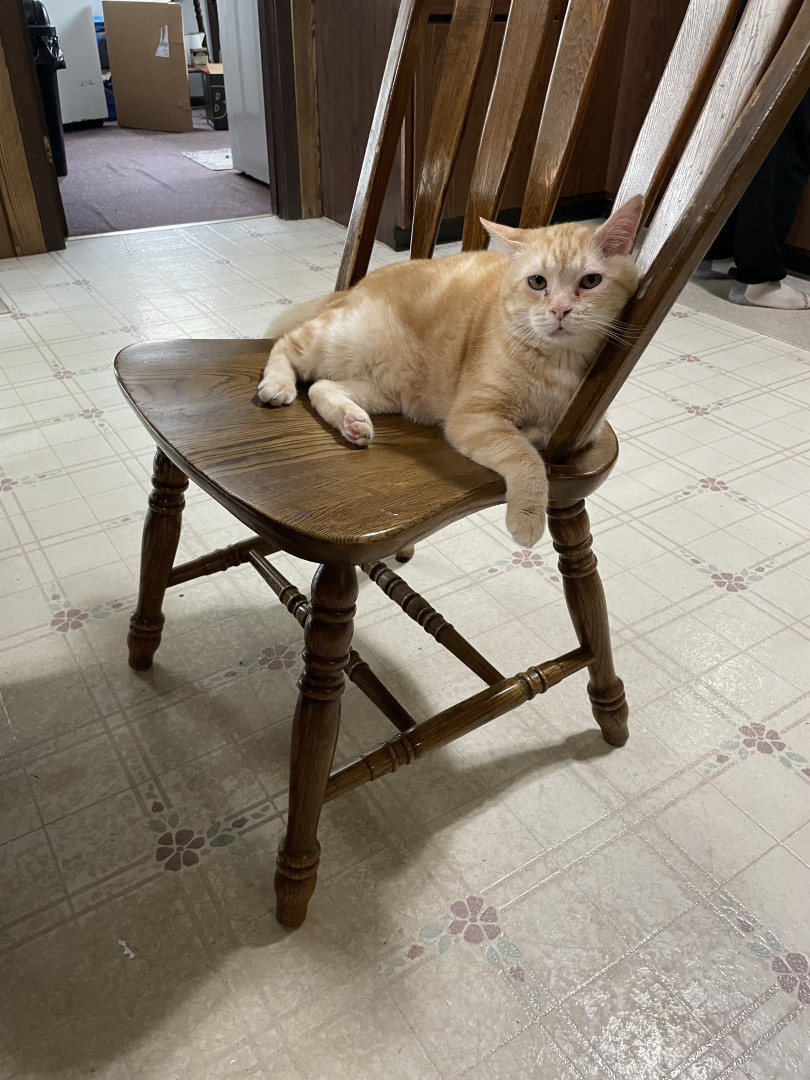 Jerry,11, is a large, lovable feline that loves to eat, sleep, sit in the corner behind a door, and stare at you.