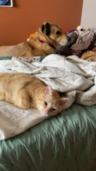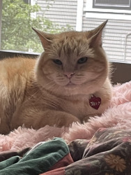 Learn MoreJerry's favorite go-to treat is just about anything he's able to eat. He especially likes chicken! He loves to sit in front of you while eating and observe, and occasionally he'll try to paw at the food. His favorite toy recently has been a balled-up chocolate wrapper. He also likes to partake in playing with a broken beaded necklace.