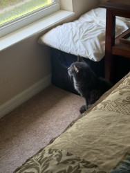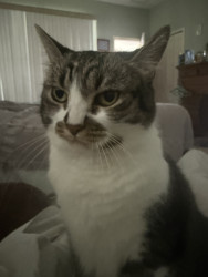 He’s our PTSD kitty. He is a rescue but we suspect he was abused before we adopted him. He has moments of pure love that is very special