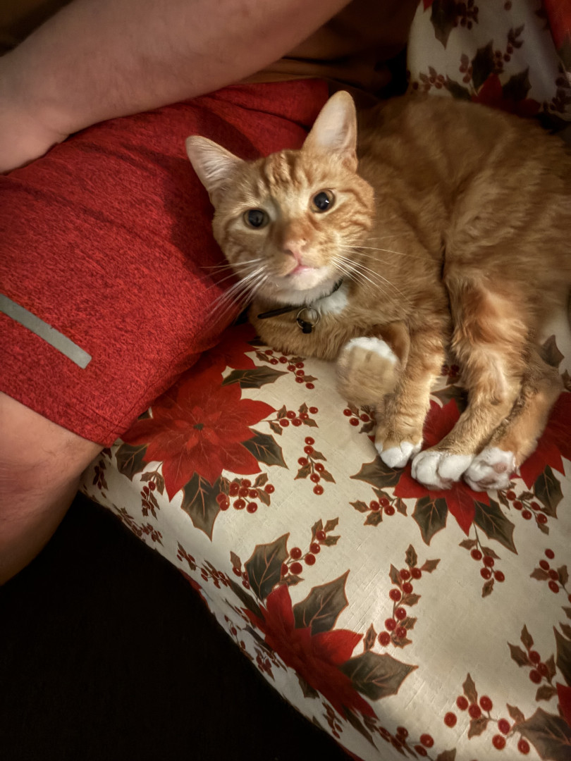 He is a loving, adventurous, and sweet cat. Energetic & smart, no matter what goes on. Gives the best hugs & cuddles. #1 biscuit maker