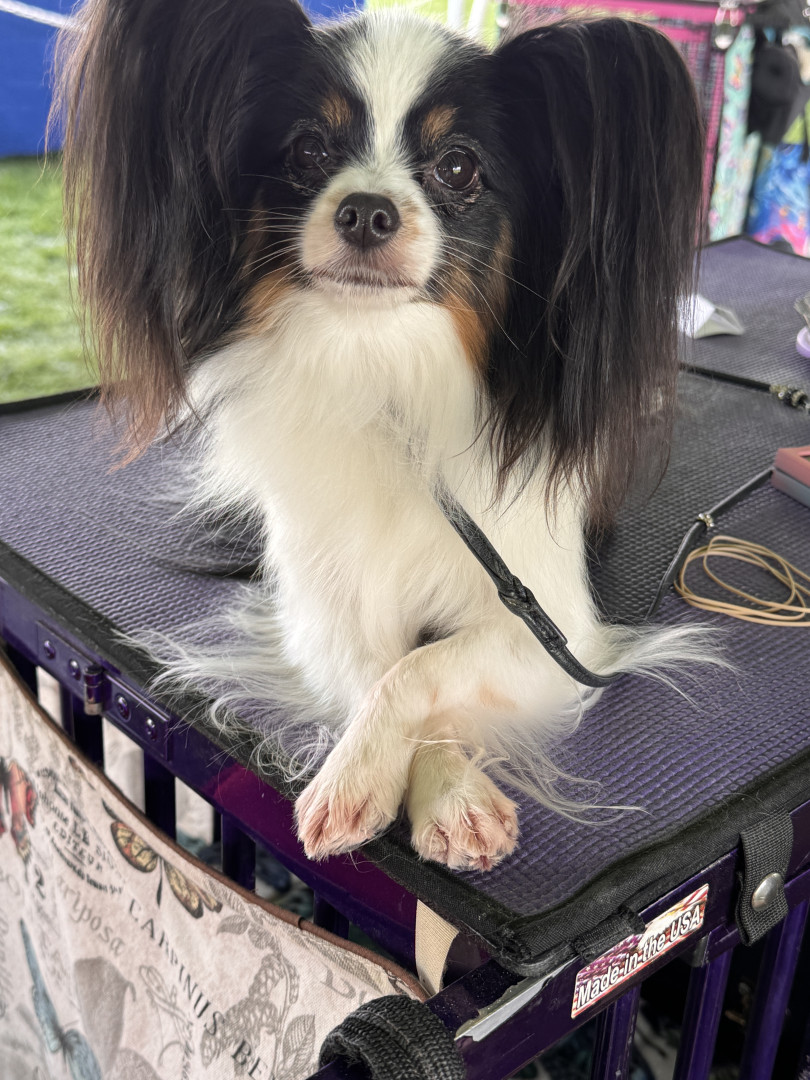 Jewel is a sweet Papillon that LOVES to run!! Cuddles on the couch are her 2nd favorite thing to do.