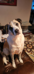First of all, she is tough. She was hit by a car as a puppy and survived a broken hip and a collapsed lung. Second, she is a calm, majestic beauty who loves cuddles and watching her neighbors..she is the queen!