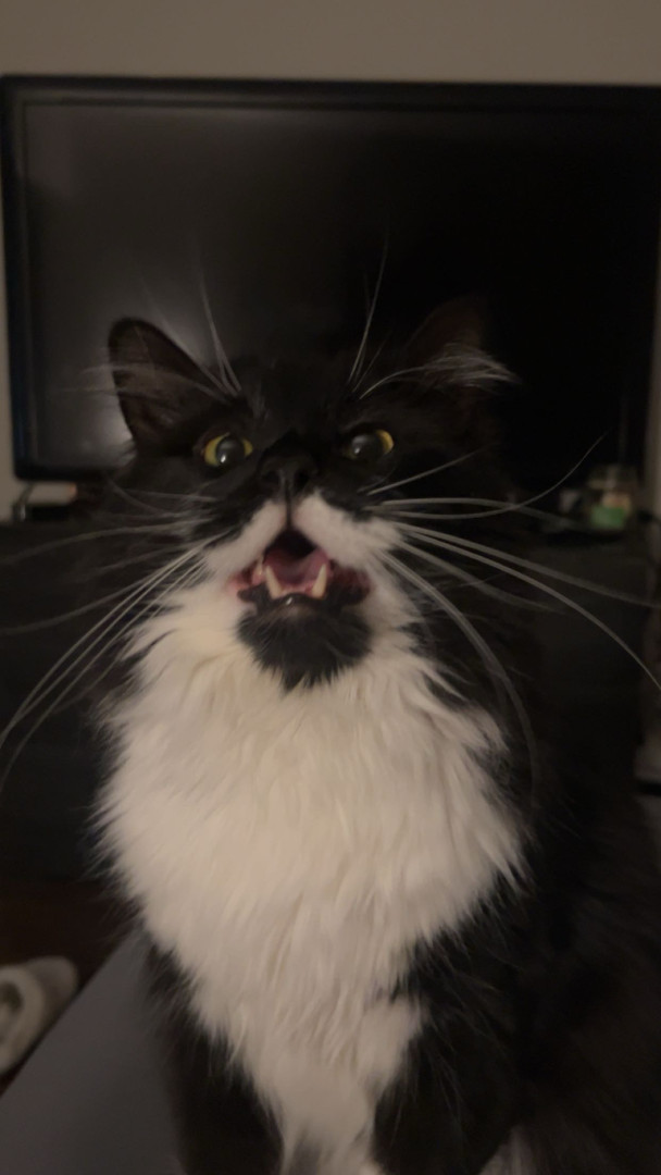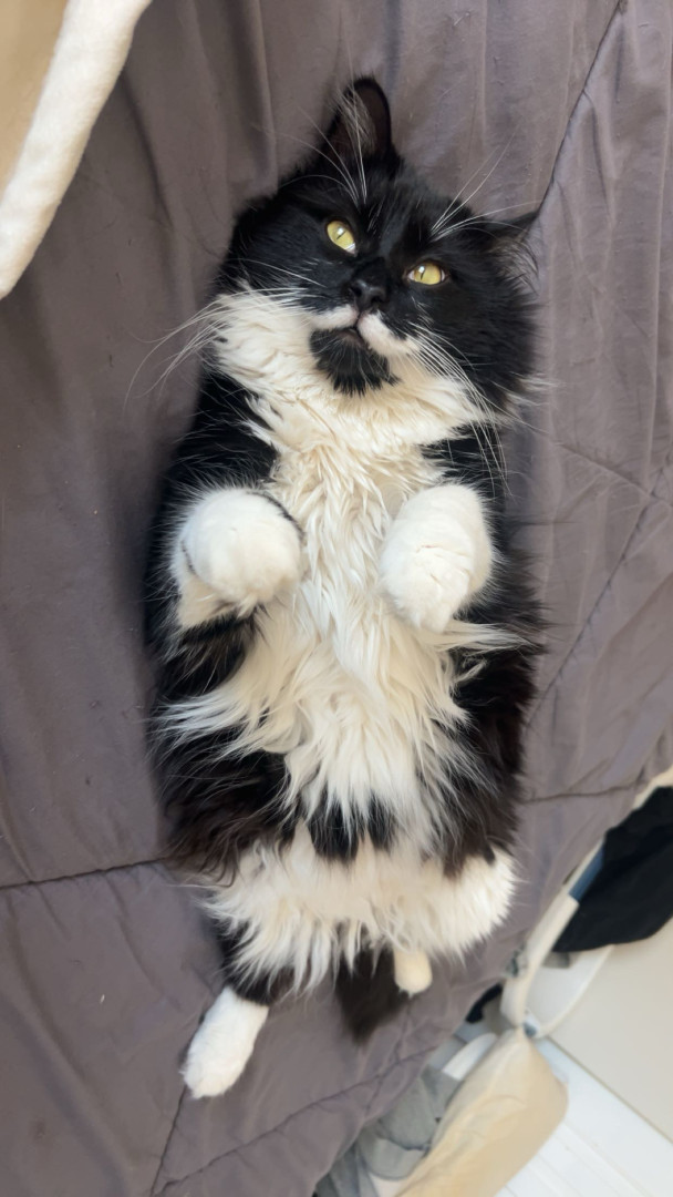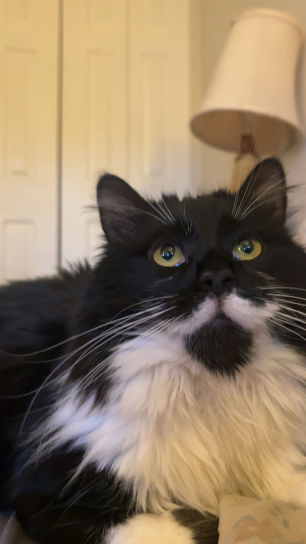 His moustache and that he loves to cuddle and loves everyone he also is a really good support kitty if your feeling down