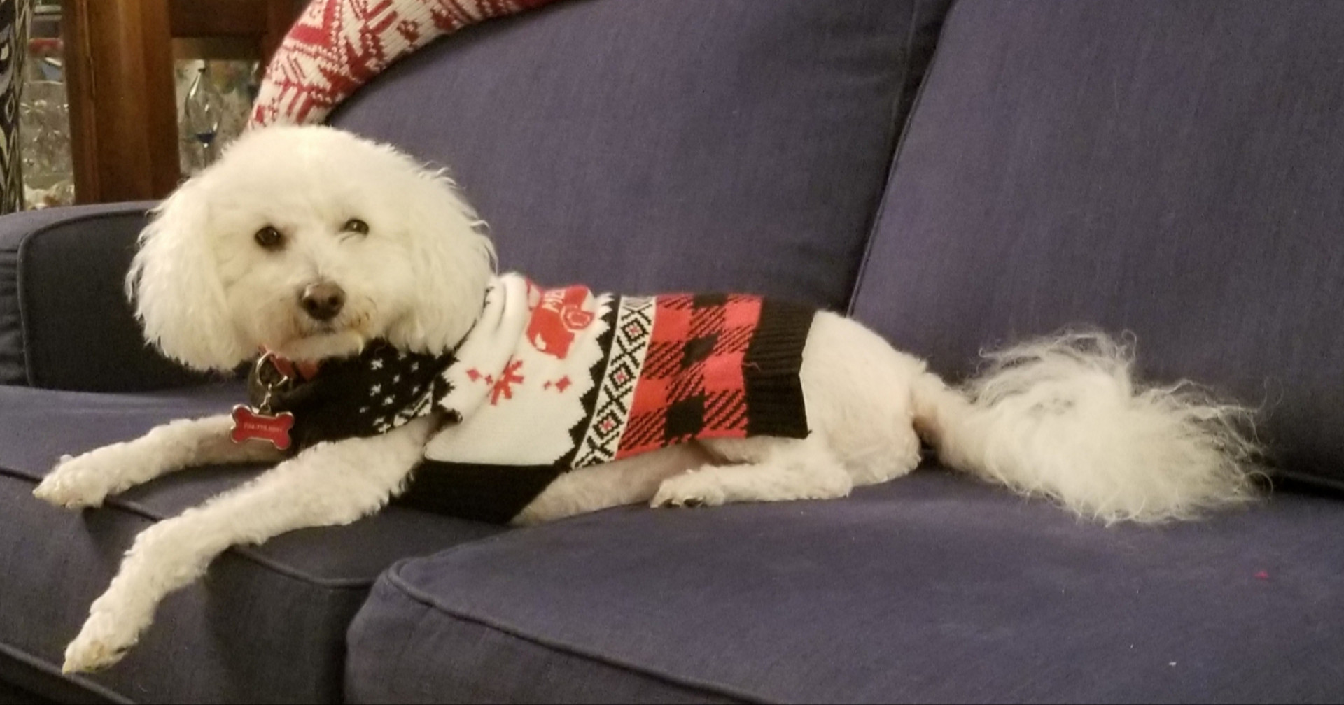Joey is a 12 yr old Bichon Freez who loves to play outside, loves his snacks and his tummy rubbed.