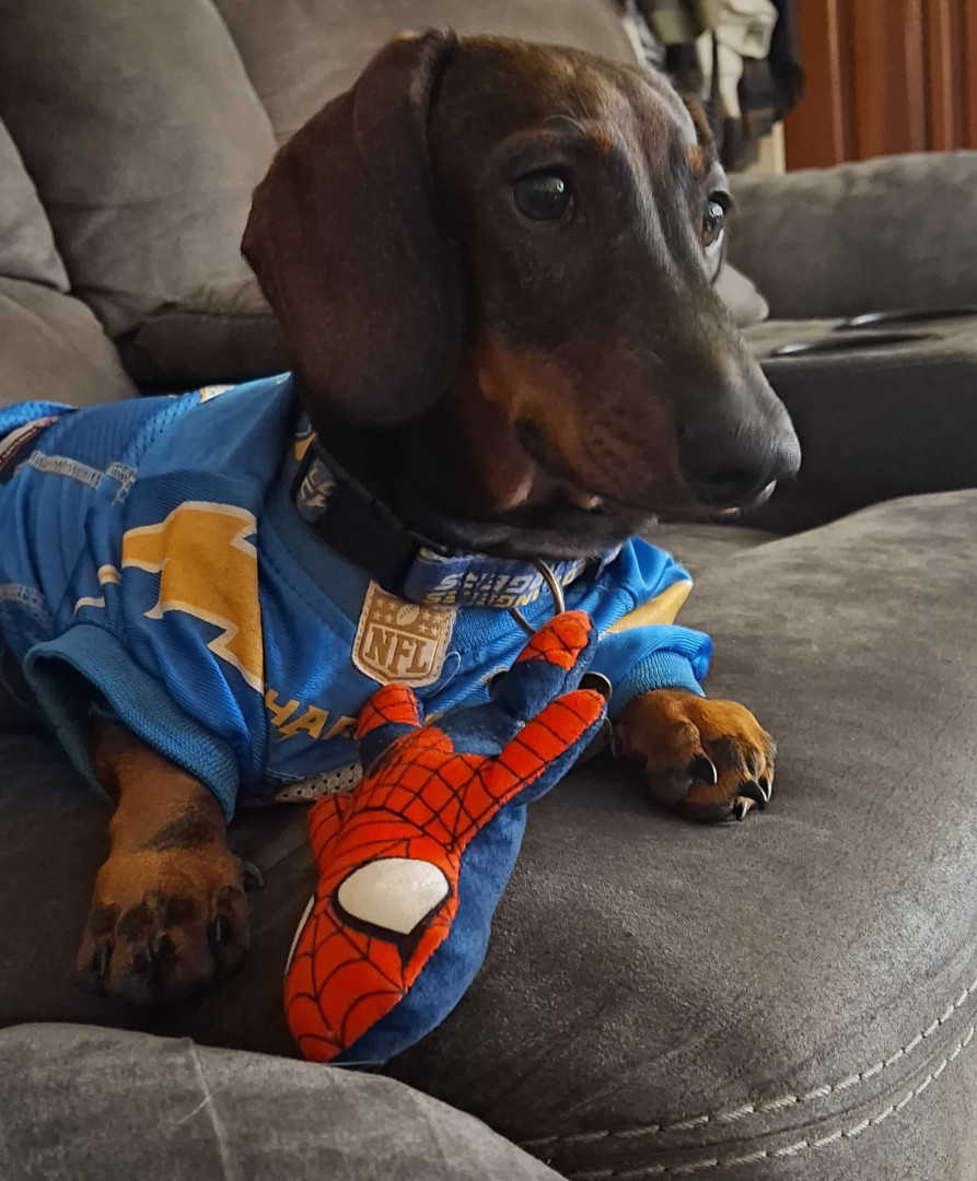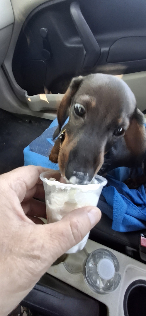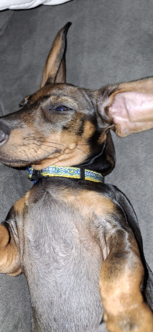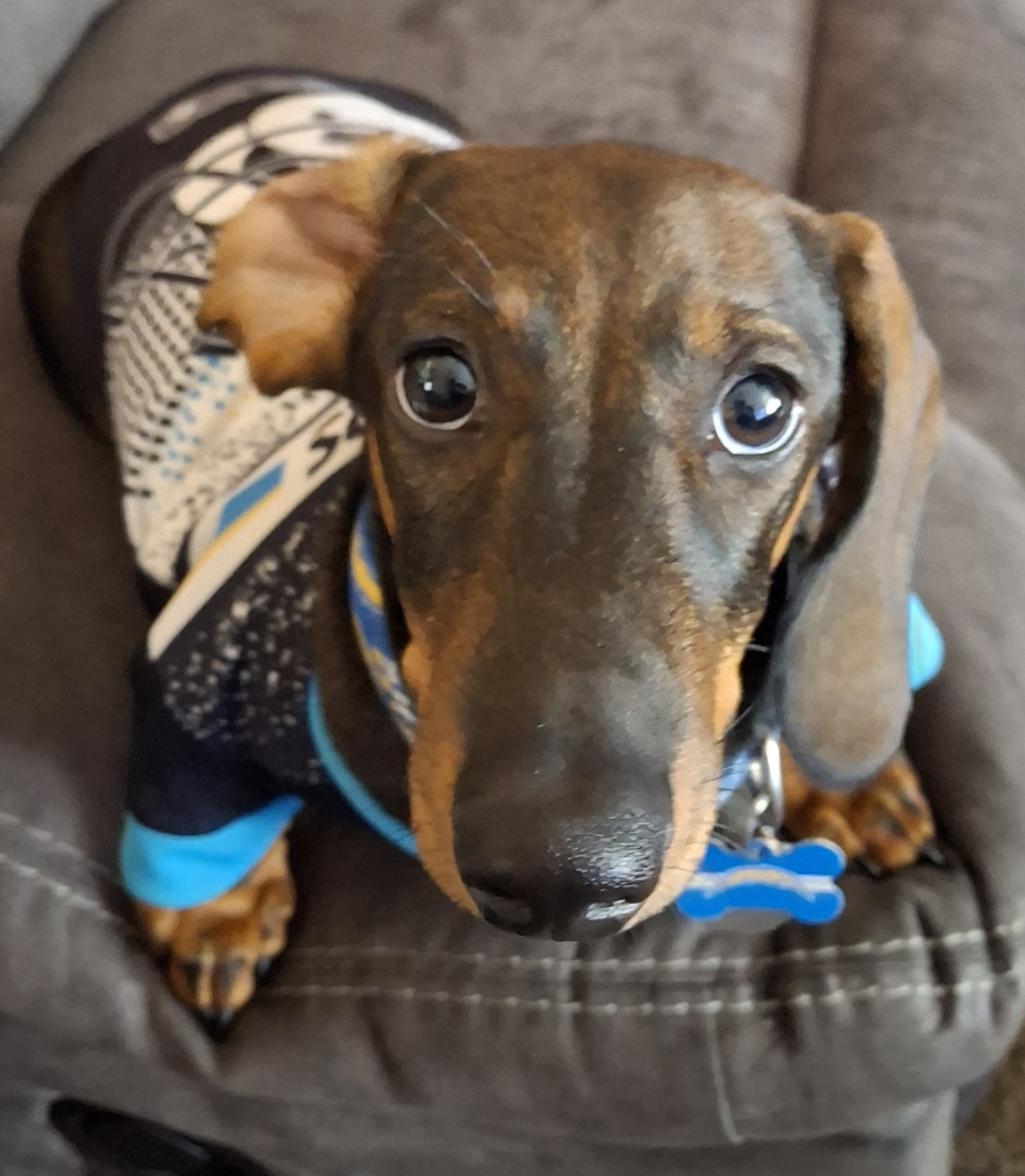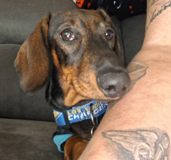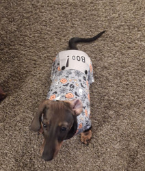 He is the goodest boy and there has yet to be any individual who can resist the glare of the Joe. He was born on the day I had to put my last dachsund down and it was also 4 months after I lost my father who's name happened to be Joe. So he holds a special place not only in my heart but in the family's heart and anyone he meets. No one can resist Joey.