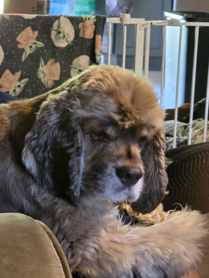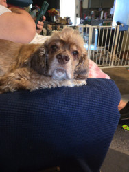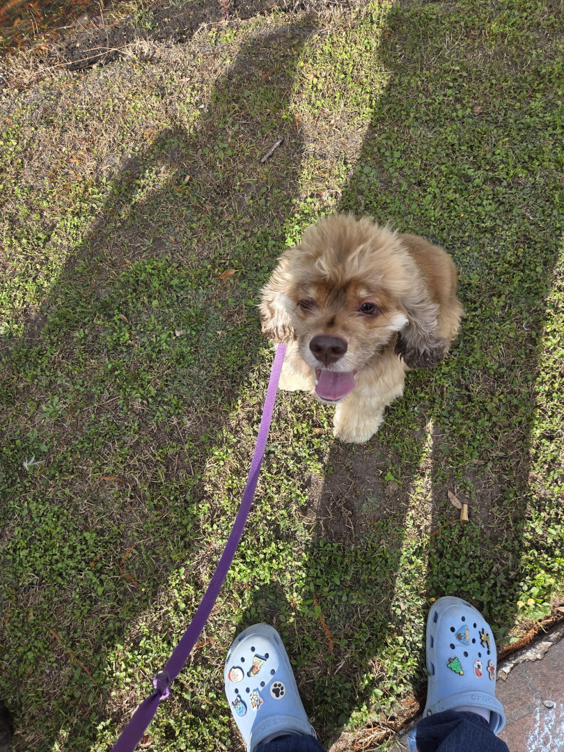 Jojo is a 5 year old blonde Chockapoo. He's very energetic, loves to play fetch with balls. He's a loving snuggle bug and great comp