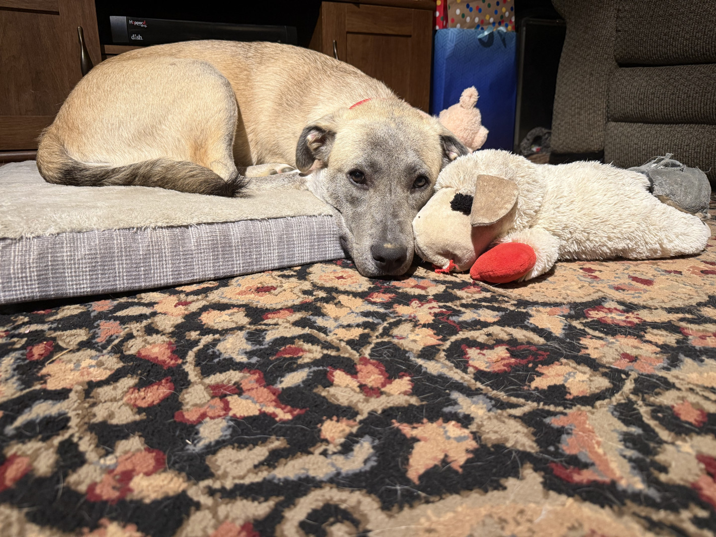 Lamb lamb is her favorite toy