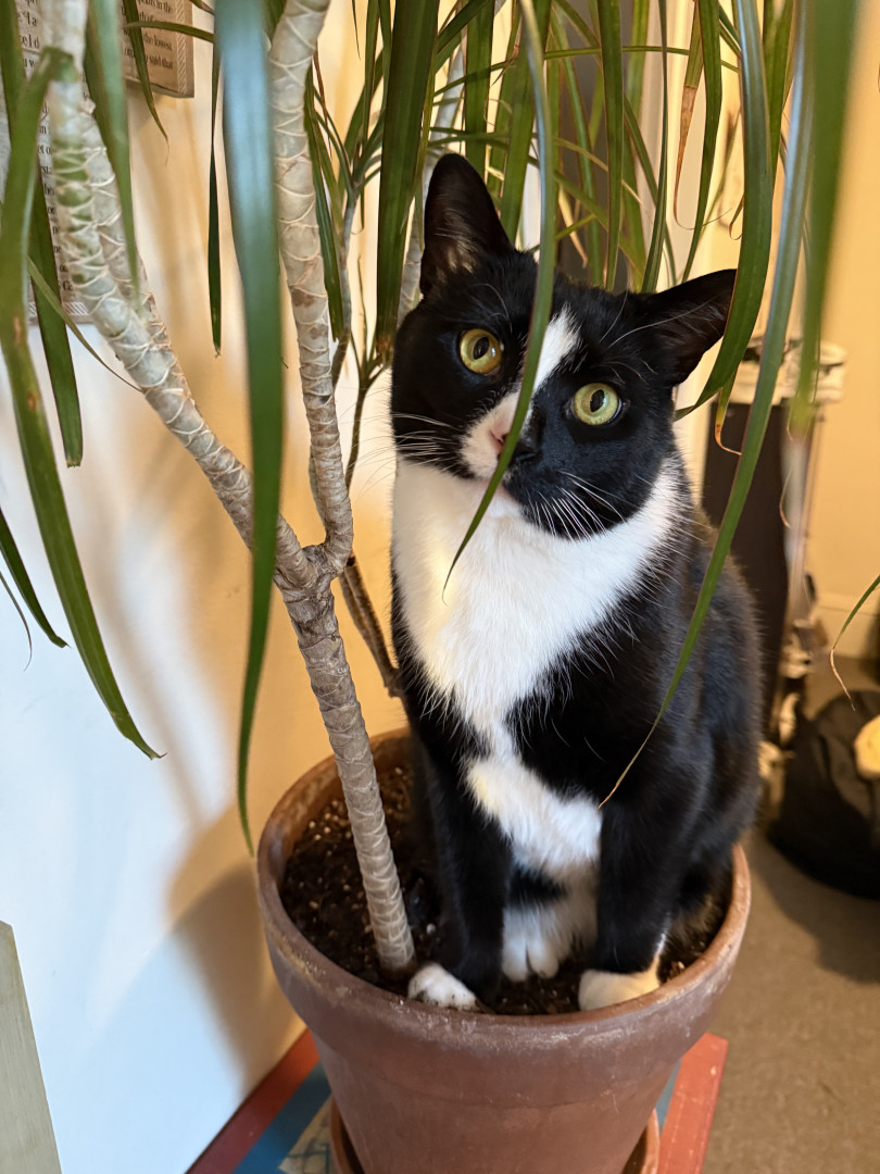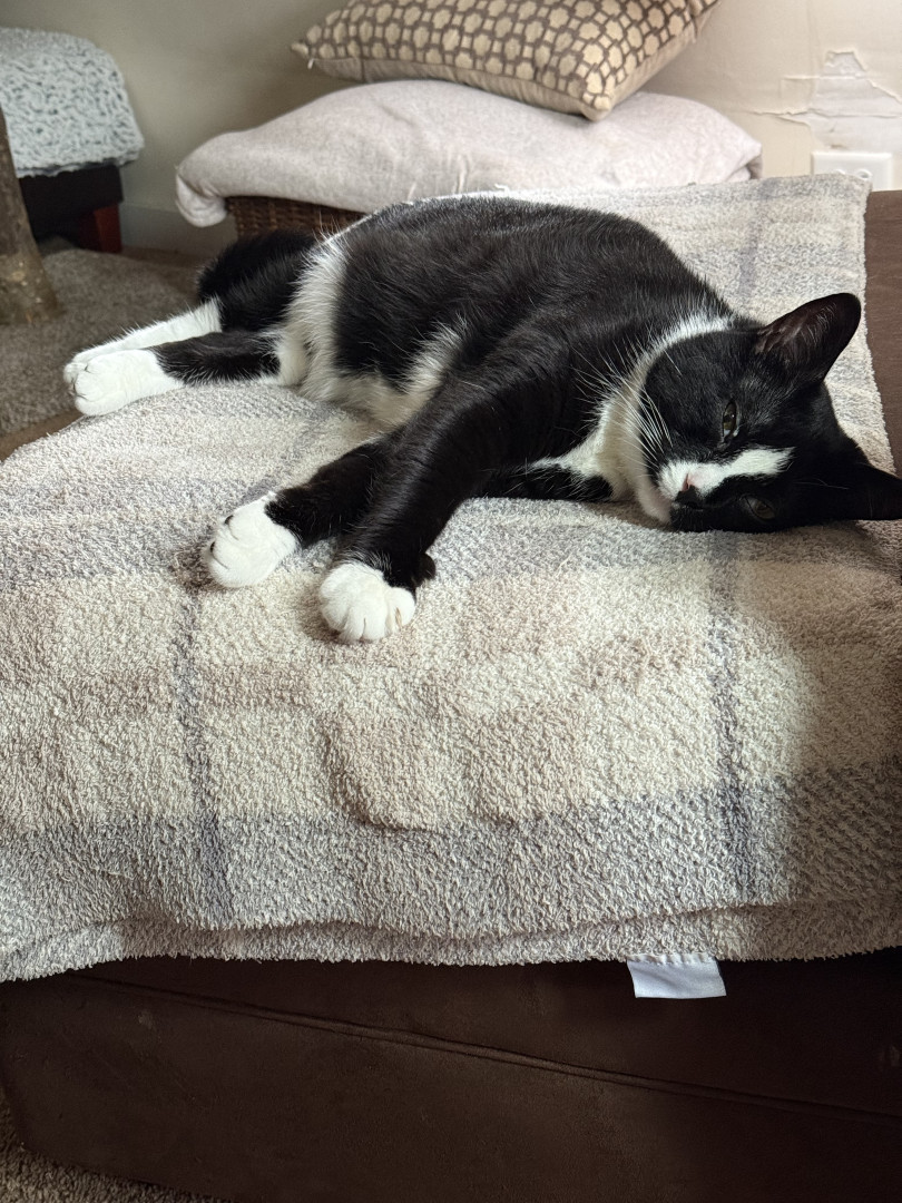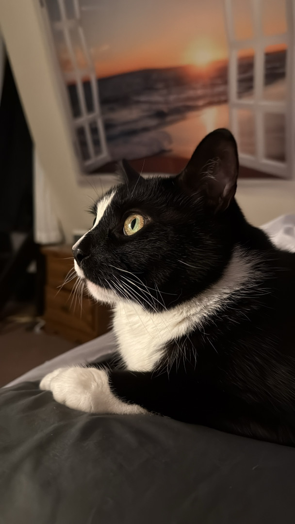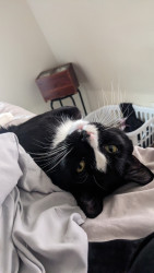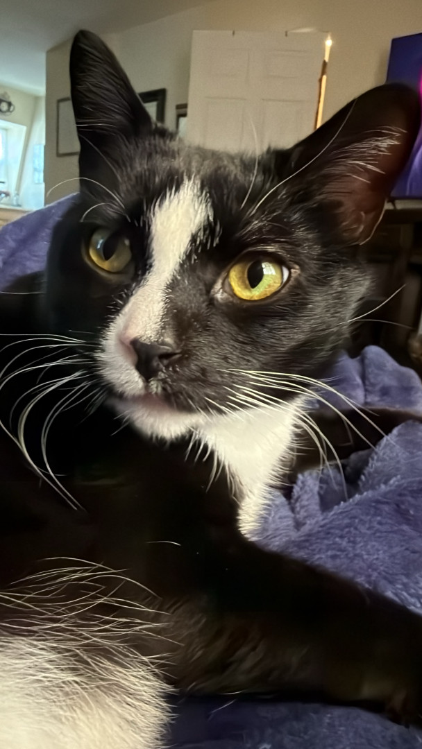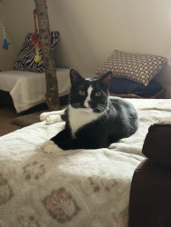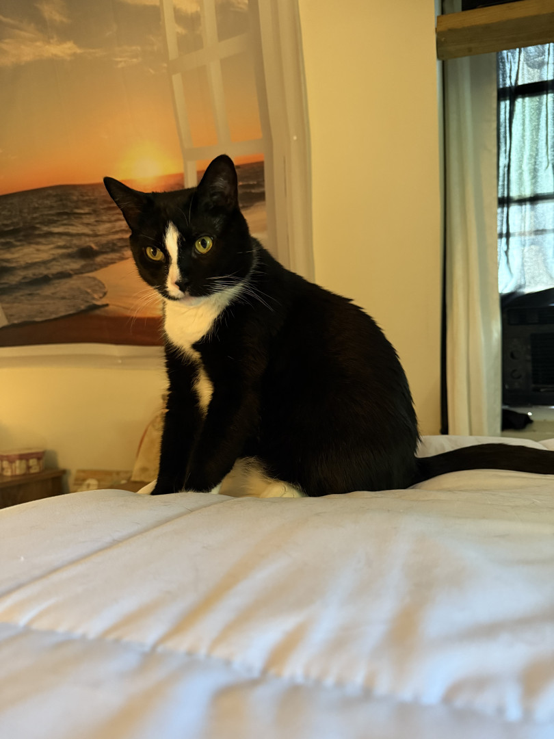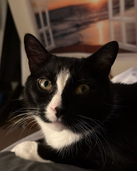 JOJO is a handsome Tuxedo fun sweet, playful boy.he is 4 yo. He definitely rules the house! He is very vocal says MOM and NO.