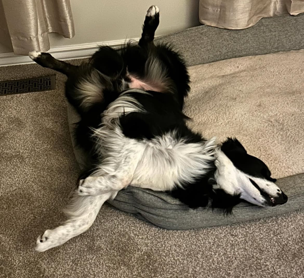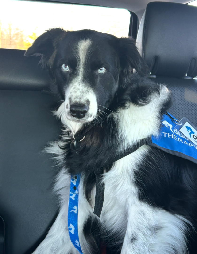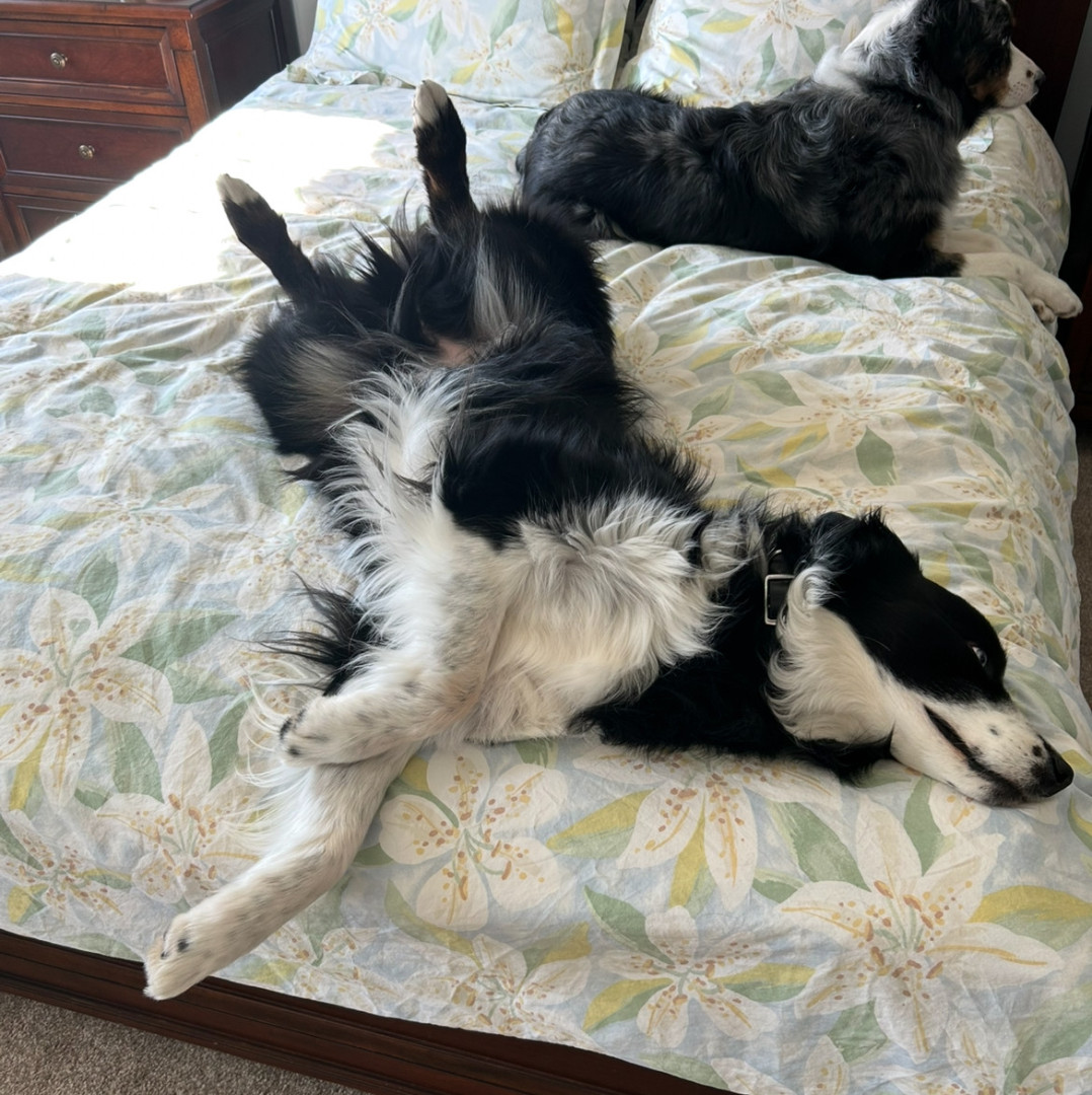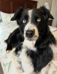 Jon is a laid back, gentle, caring, super sweet 7 year old Australian Shepherd who serves as a touch therapy dog if he is not snoozing!☺️🐾