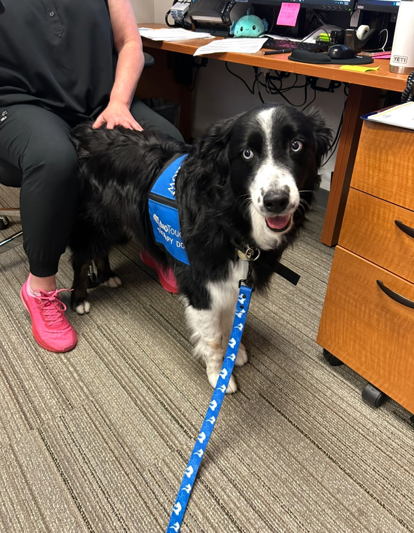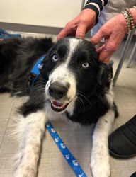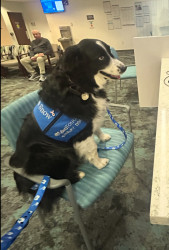 Jon's most unique quality is making people smile. As a touch therapy dog, when he enters a room in the hospital, everyone wants to pet him and say hello! He loves to lean in and gets pets, but then if he really likes you, he gives you his butt and asks for a butt rub!