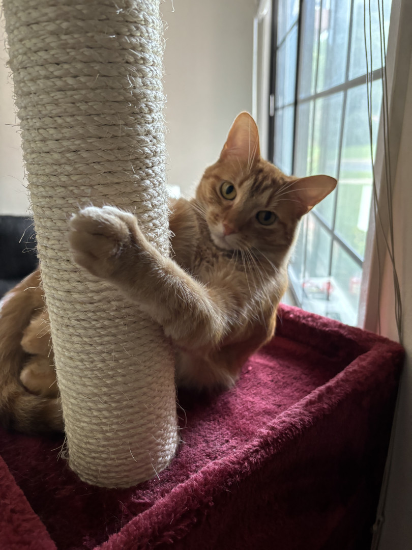 Jonesy is a cute and mischievous orange tabby! He loves to play and nap.