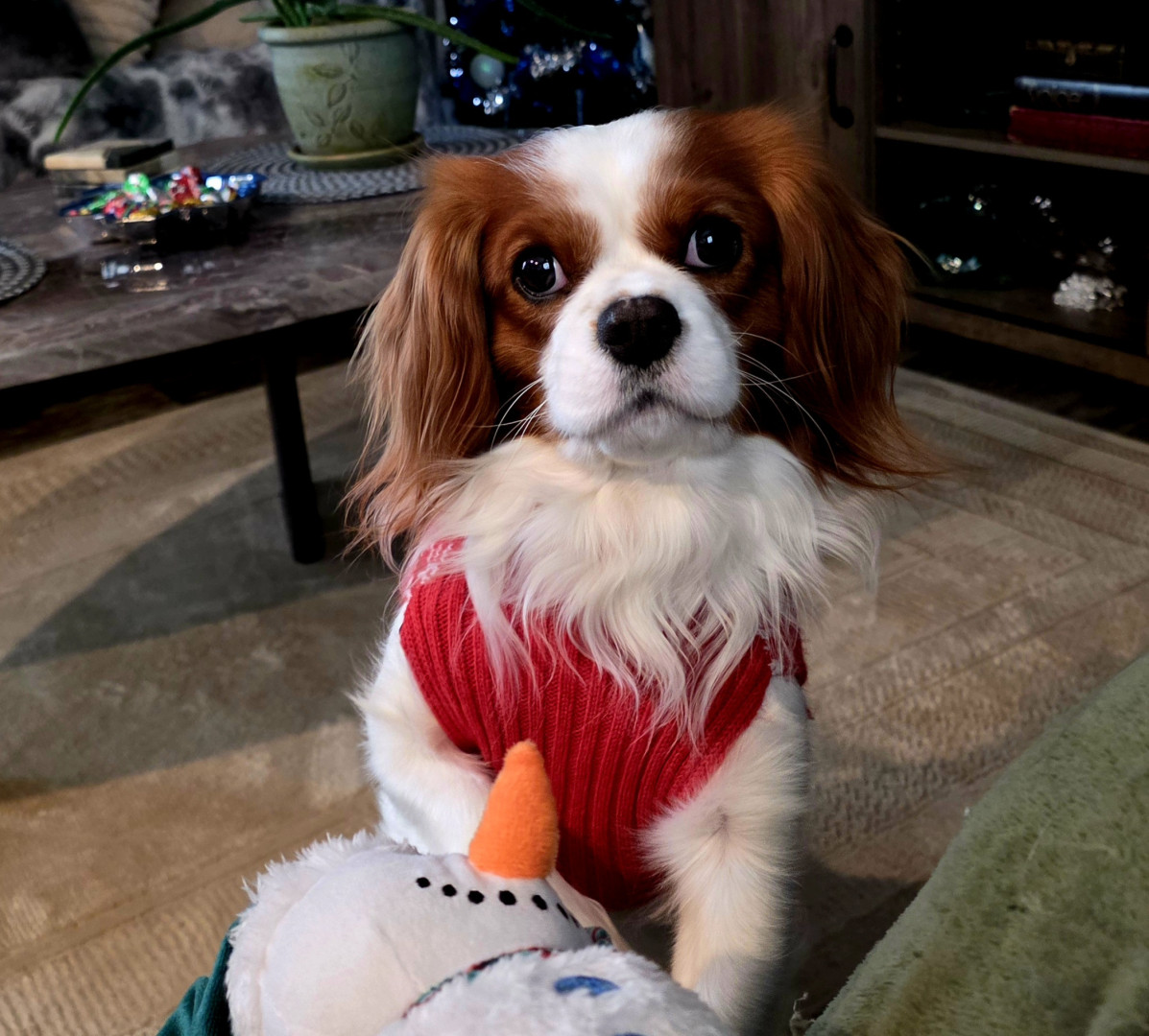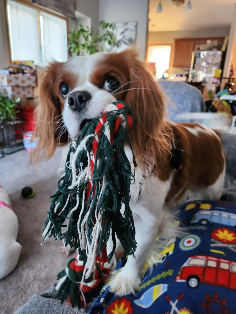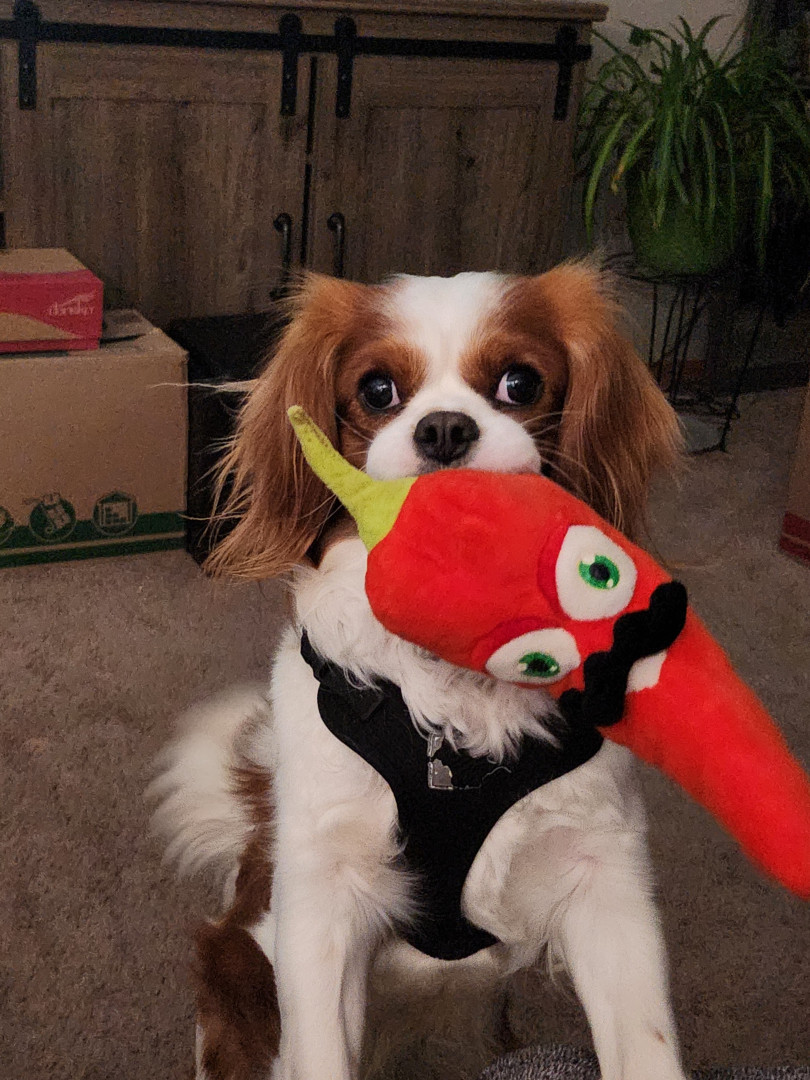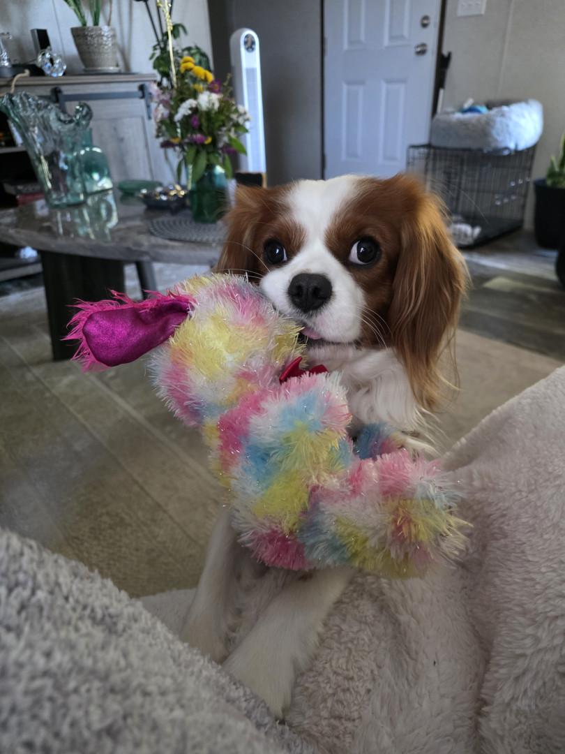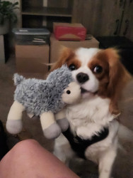 Learn MoreA small lamb. He has had it since he was a baby. His favorite toy to retrieve and lay with. He loves chicken wrapped sweet potatoes treats.