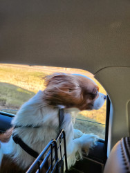 Joey love's to be around people. He is a cuddler. He loves to have his head out the window and let the wind blow on his face.