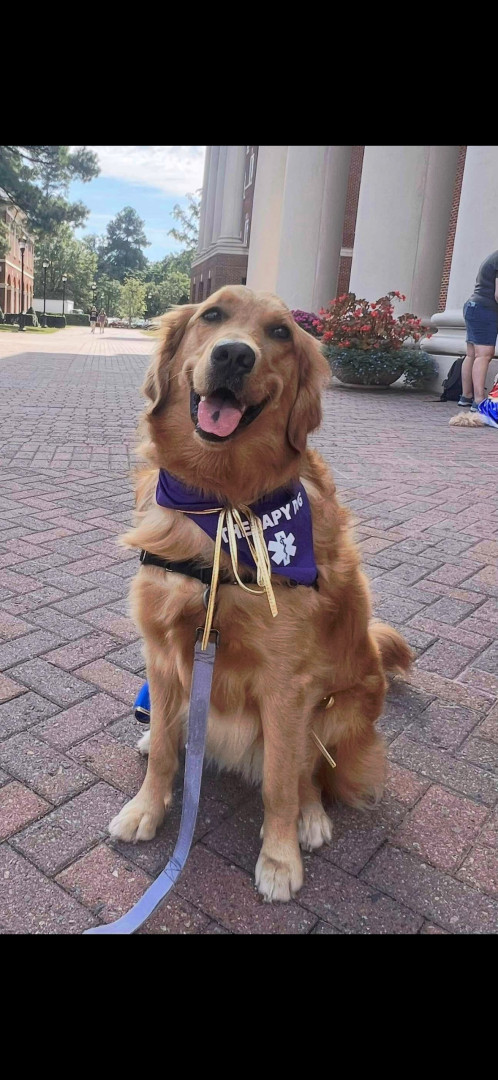 At just 1 years old, Journey was certified via two different organizations to be a Therapy Dog. She is one of the calmest Golden Retriever's I’ve ever met. Her demeanor is that of a wise old girl but her love for happy go lucky days keeps her little one year old body busy.